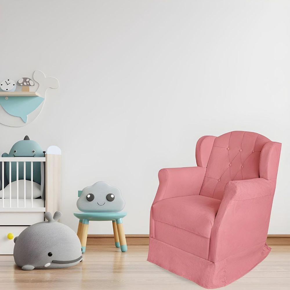 Poltrona Amamentação Cadeira Reforçada Balanço Lile Suede rosê