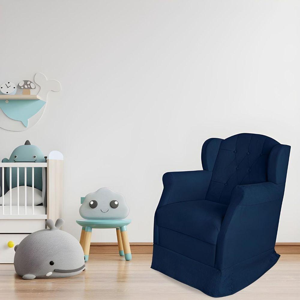 Poltrona Amamentação Cadeira Reforçada Balanço Lile Suede azul Marinho