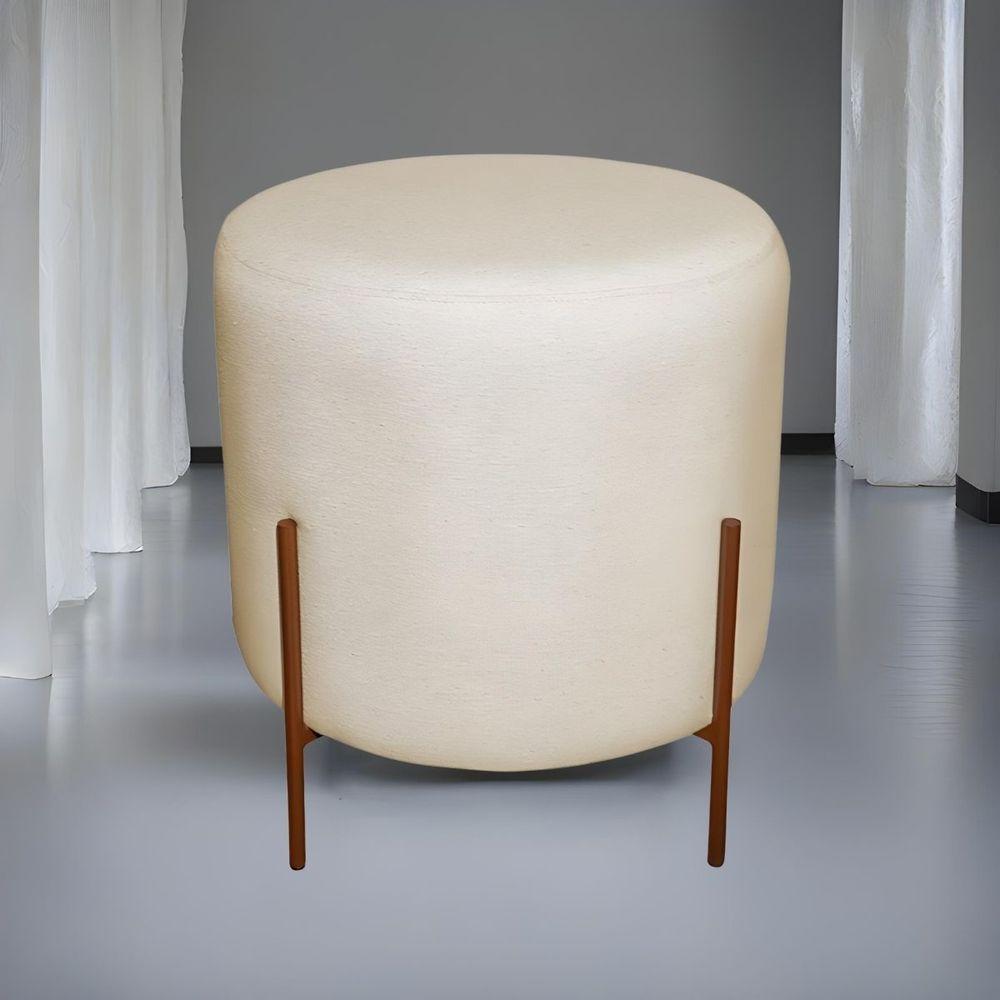 Puff Estofado Para Sala Redondo Decorativo Luxo Ivy bege base Do Pés bronze tecido linho