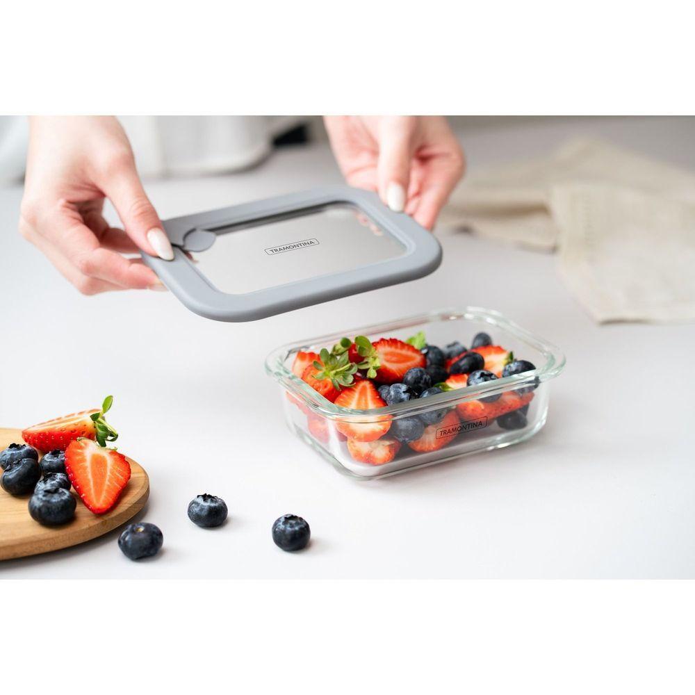 Pote De Vidro Tramontina Vittra Retangular Com Tampa Hermética De Silicone 0,37 L Tramontina