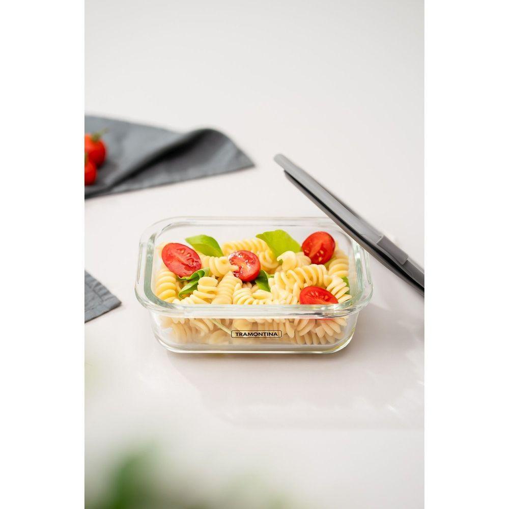 Pote De Vidro Tramontina Vittra Retangular Com Tampa Hermética De Silicone 0,37 L TramontinaPote de Vidro Tramontina Vittra Retangular com Tampa Hermética de Silicone 0,37 L Tramontina -Pote de Vidro Tramontina Vittra Retangular com Tampa Hermética de Silicone 0,37 LCompacto e versátil, o pote de vidro Tramontina Vittra retangular com tampa hermética de silicone 0,37 L é ideal para porções pequenas e lanches rápidos. Sua tampa de vidro com borda em silicone fornece fechamento hermético, preservando os alimentos por mais tempo. Empilhável e adequado para micro-ondas, forno (sem tampa), freezer e geladeira, este pote é fácil de lavar e manusear, tornando seu uso diário prático e funcional.Com tampas de vidro com borda em silicone, os potes tem fechamento hermético perfeito e garante que seus alimentos ficarão frescos por mais tempo, sem risco de contaminação externa. Eles são empilháveis, permitindo que você aproveite ao máximo o espaço do seu armário de forma organizada.- Adequado para micro-ondas (cuidado: abra a abertura de saída de ar).- Permitido para máquina de lavar (sem a tampa).- Apropriado para forno (sem a tampa).- Permitido para freezer e geladeira.- Para fechar a tampa, abra primeiramente a abertura de saída de ar, coloque a tampa no corpo e, em seguida, feche a abertura de saída de ar.Cuidados com o produto Confira o produto para garantir que ele não tenha sido danificado durante o transporte.Lave o produto com água e detergente neutro antes de usar.Use apenas sabão ou detergente e uma esponja macia. Outros tipos de produto, como palha de aço, poderão riscar ou prejudicar o brilho das peças.Por ter o corpo em vidro, requer certos cuidados durante o uso e manuseio:Evite batidas que possam ocasionar trincas ou quebras no produto.Garantia90 dias de garantia legal para vícios ou defeitos de fabricação. - -Características Gerais do Produto:Garantia: - 3 Meses