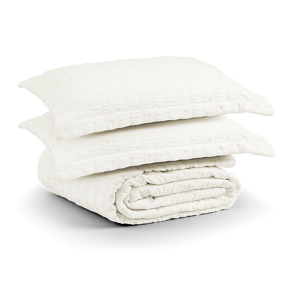 Cobre Leito King Plissê Seersucker E Matelado Ultrassônico 03 Peças 100% Poliéster - Marfim