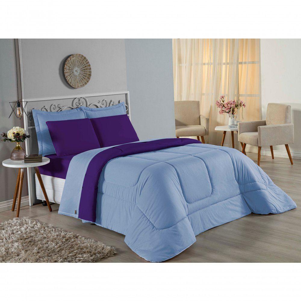 Edredom Solteiro Nobre 1 Peça Dupla Face 1,60m X 2,40m Malha 100% Algodão - Azul-bebê / RoxoTransforme suas noites de sono com o conforto supremo do Edredom Solteiro Nobre. A escolha ideal para quem não abre mão da maciez extrema e de um visual clean e moderno para o quarto.Por que o Edredom Nobre é a escolha perfeita?- Toque Extremamente Macio: Confeccionado em Malha 100% Algodão com Fio 30/1 Penteado, este edredom oferece uma sensação suave na pele, garantindo um descanso muito mais acolhedor.- Versatilidade Dupla Face: O modelo é dupla face e liso, permitindo variar a decoração da cama com facilidade e praticidade.- Aconchego na Medida Certa: Seu enchimento em fibra siliconada proporciona o volume e o aquecimento ideais para noites agradáveis.- Alta Qualidade: O fio penteado passa por um processo que retira as fibras mais curtas e impurezas, resultando em um tecido mais resistente e que não forma bolinhas com facilidade.Produto composto por (Total 01 Peça):01 Edredom Solteiro Dupla Face 1,60m x 2,40mComposição:Tecido: Malha 100% Algodão - Fio 30/1 PenteadoEnchimento: 100% Poliéster Siliconada