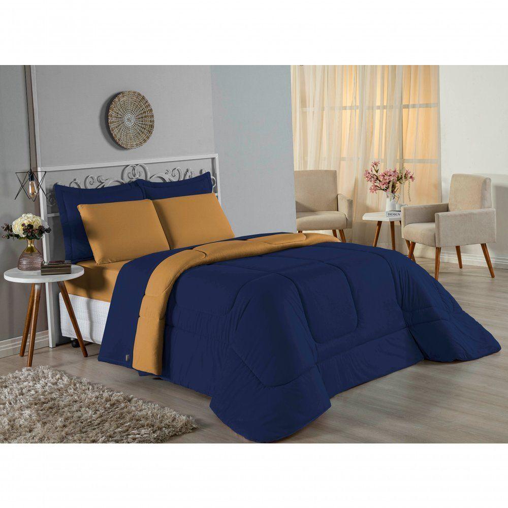 Edredom Solteiro Nobre 1 Peça Dupla Face 1,60m X 2,40m Malha 100% Algodão - Azul-marinho / CobreTransforme suas noites de sono com o conforto supremo do Edredom Solteiro Nobre. A escolha ideal para quem não abre mão da maciez extrema e de um visual clean e moderno para o quarto.Por que o Edredom Nobre é a escolha perfeita?- Toque Extremamente Macio: Confeccionado em Malha 100% Algodão com Fio 30/1 Penteado, este edredom oferece uma sensação suave na pele, garantindo um descanso muito mais acolhedor.- Versatilidade Dupla Face: O modelo é dupla face e liso, permitindo variar a decoração da cama com facilidade e praticidade.- Aconchego na Medida Certa: Seu enchimento em fibra siliconada proporciona o volume e o aquecimento ideais para noites agradáveis.- Alta Qualidade: O fio penteado passa por um processo que retira as fibras mais curtas e impurezas, resultando em um tecido mais resistente e que não forma bolinhas com facilidade.Produto composto por (Total 01 Peça):01 Edredom Solteiro Dupla Face 1,60m x 2,40mComposição:Tecido: Malha 100% Algodão - Fio 30/1 PenteadoEnchimento: 100% Poliéster Siliconada