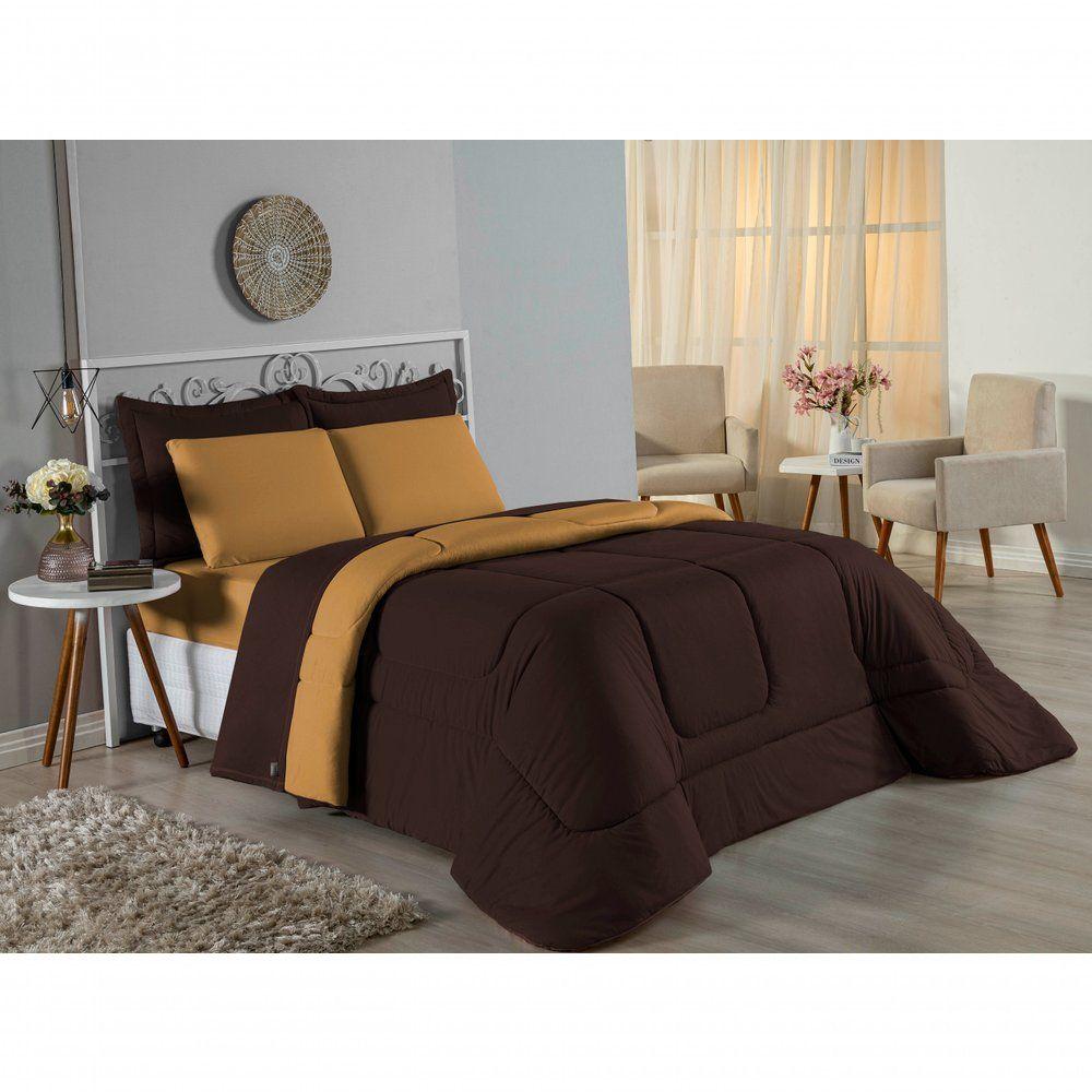 Edredom Solteiro Nobre 1 Peça Dupla Face 1,60m X 2,40m Malha 100% Algodão - Marrom / Cobre