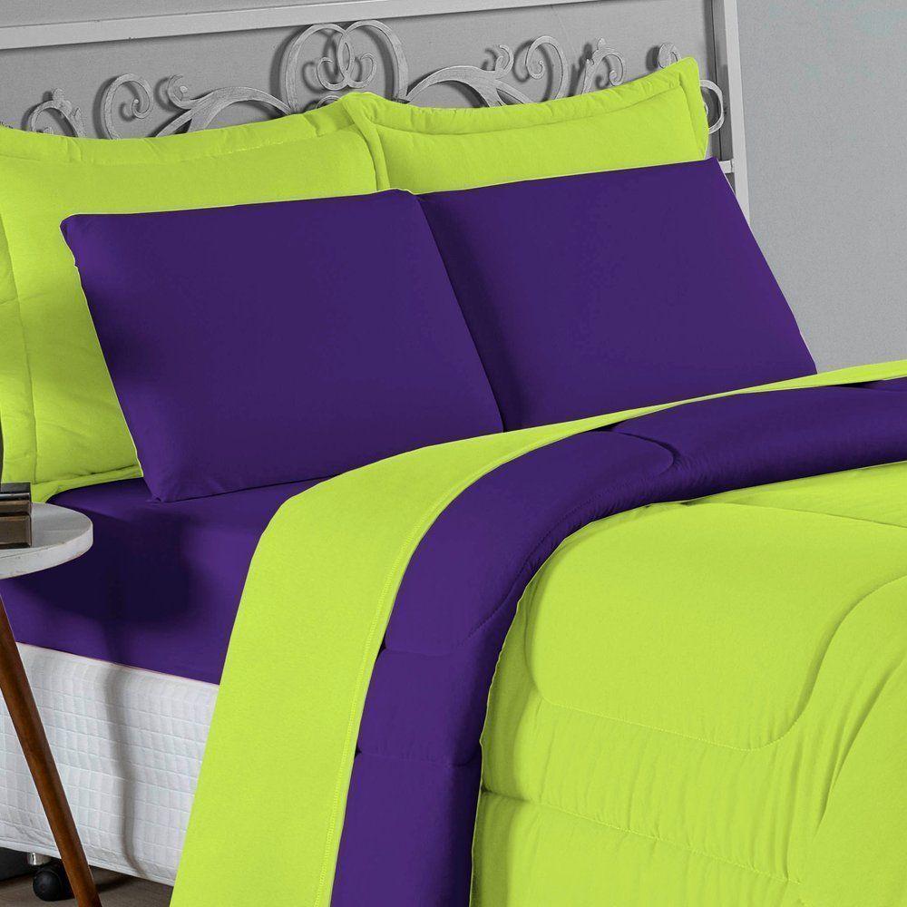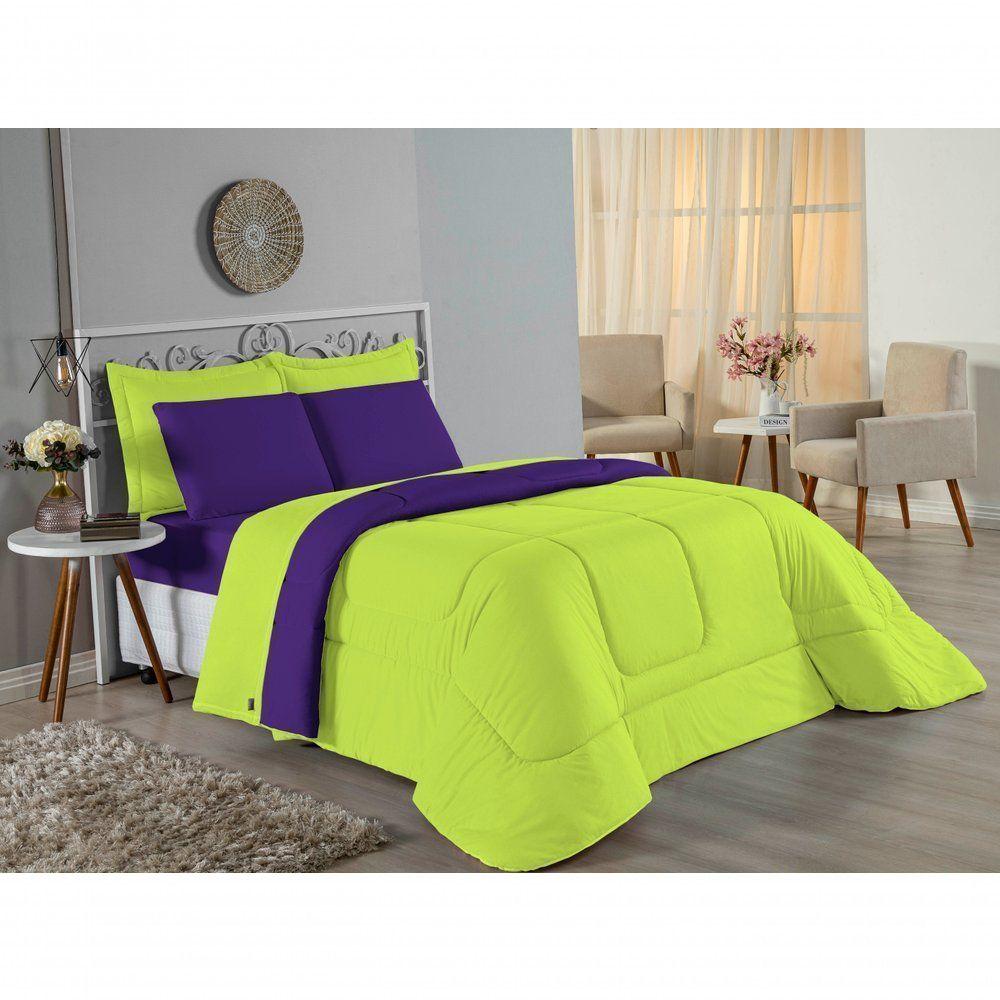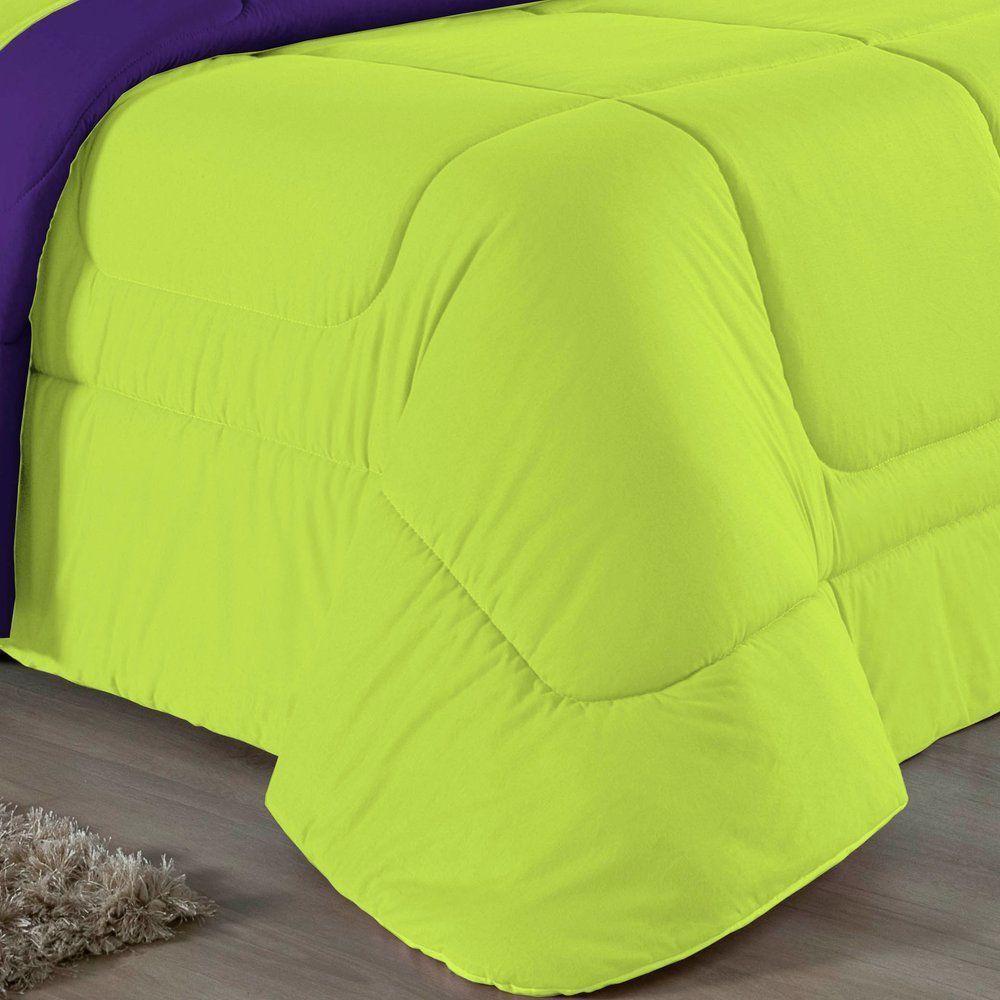 Edredom Solteiro Nobre 1 Peça Dupla Face 1,60m X 2,40m Malha 100% Algodão - Pistache / Roxo