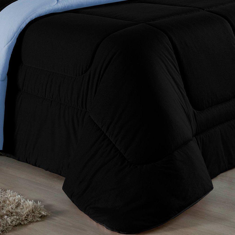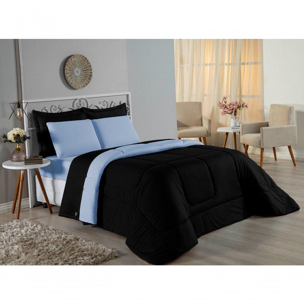 Edredom Solteiro Nobre 1 Peça Dupla Face 1,60m X 2,40m Malha 100% Algodão - Preto / Azul-bebêTransforme suas noites de sono com o conforto supremo do Edredom Solteiro Nobre. A escolha ideal para quem não abre mão da maciez extrema e de um visual clean e moderno para o quarto.Por que o Edredom Nobre é a escolha perfeita?- Toque Extremamente Macio: Confeccionado em Malha 100% Algodão com Fio 30/1 Penteado, este edredom oferece uma sensação suave na pele, garantindo um descanso muito mais acolhedor.- Versatilidade Dupla Face: O modelo é dupla face e liso, permitindo variar a decoração da cama com facilidade e praticidade.- Aconchego na Medida Certa: Seu enchimento em fibra siliconada proporciona o volume e o aquecimento ideais para noites agradáveis.- Alta Qualidade: O fio penteado passa por um processo que retira as fibras mais curtas e impurezas, resultando em um tecido mais resistente e que não forma bolinhas com facilidade.Produto composto por (Total 01 Peça):01 Edredom Solteiro Dupla Face 1,60m x 2,40mComposição:Tecido: Malha 100% Algodão - Fio 30/1 PenteadoEnchimento: 100% Poliéster Siliconada