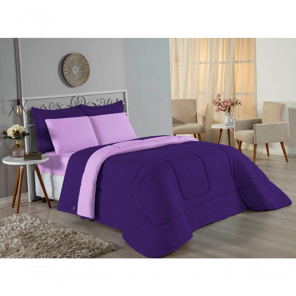 Edredom Solteiro Nobre 1 Peça Dupla Face 1,60m X 2,40m Malha 100% Algodão - Roxo / Lilás