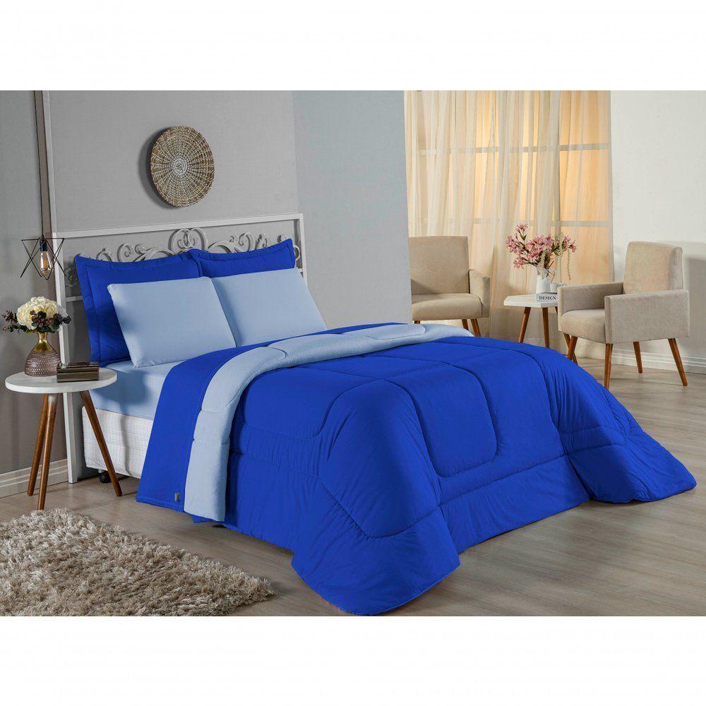 Edredom Solteiro Nobre 1 Peça Dupla Face 1,60m X 2,40m Malha 100% Algodão - Royal / Azul-bebêTransforme suas noites de sono com o conforto supremo do Edredom Solteiro Nobre. A escolha ideal para quem não abre mão da maciez extrema e de um visual clean e moderno para o quarto.Por que o Edredom Nobre é a escolha perfeita?- Toque Extremamente Macio: Confeccionado em Malha 100% Algodão com Fio 30/1 Penteado, este edredom oferece uma sensação suave na pele, garantindo um descanso muito mais acolhedor.- Versatilidade Dupla Face: O modelo é dupla face e liso, permitindo variar a decoração da cama com facilidade e praticidade.- Aconchego na Medida Certa: Seu enchimento em fibra siliconada proporciona o volume e o aquecimento ideais para noites agradáveis.- Alta Qualidade: O fio penteado passa por um processo que retira as fibras mais curtas e impurezas, resultando em um tecido mais resistente e que não forma bolinhas com facilidade.Produto composto por (Total 01 Peça):01 Edredom Solteiro Dupla Face 1,60m x 2,40mComposição:Tecido: Malha 100% Algodão - Fio 30/1 PenteadoEnchimento: 100% Poliéster Siliconada