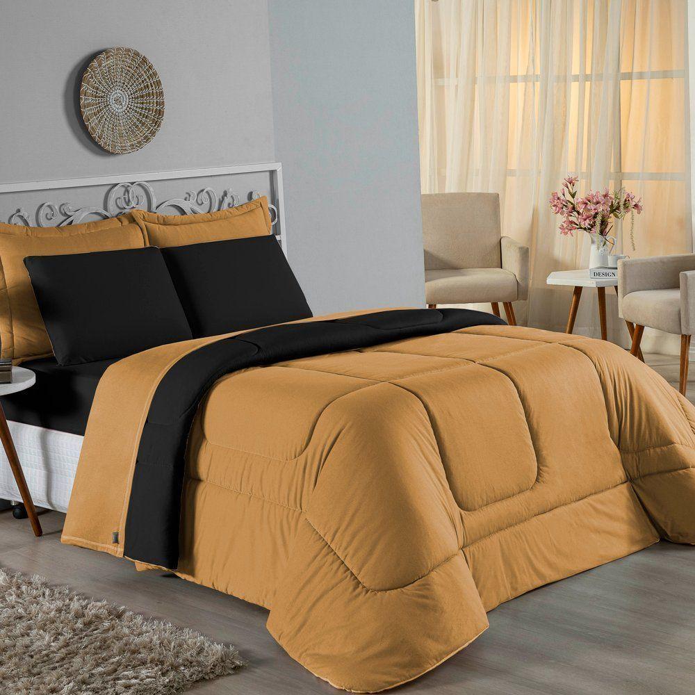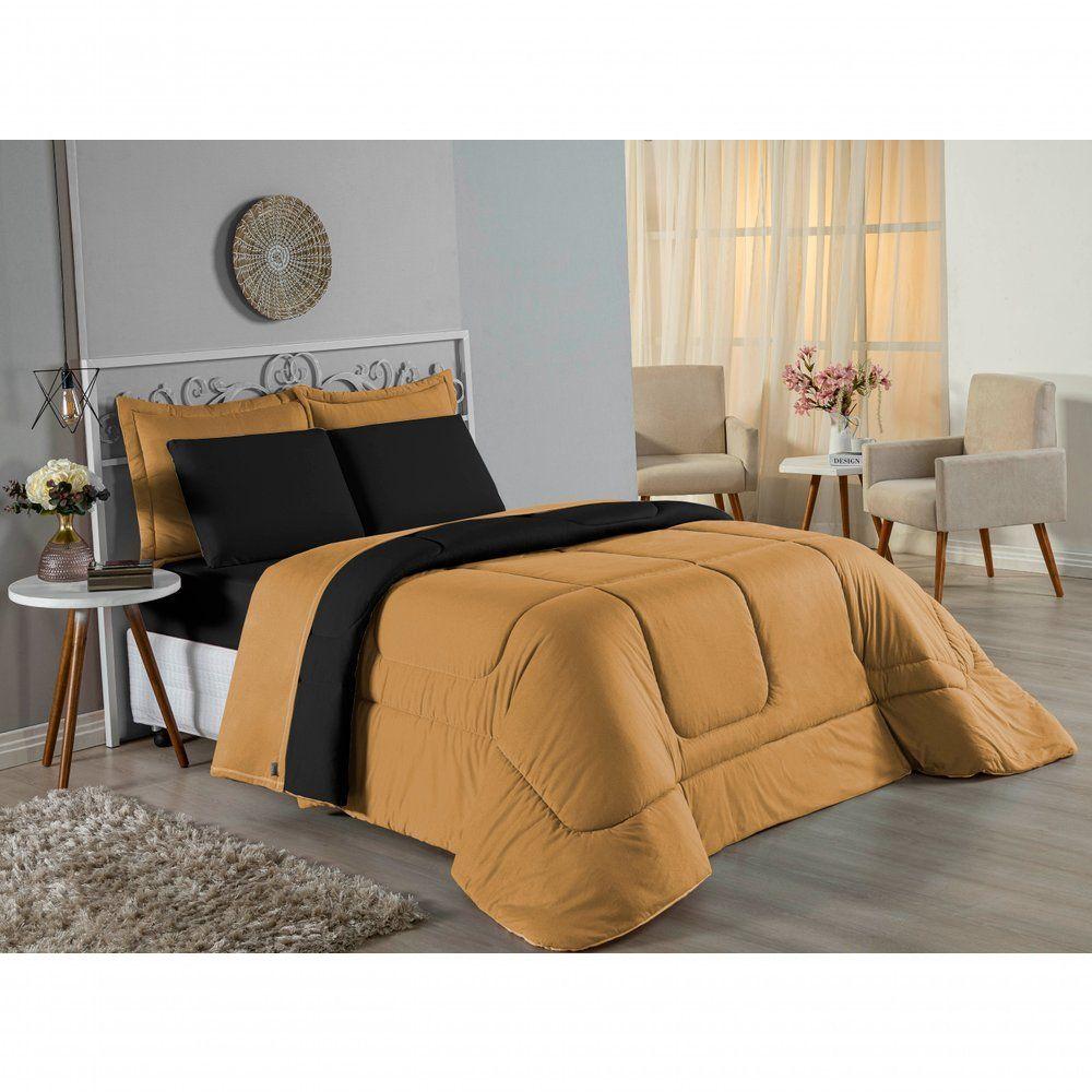 Edredom Solteiro Nobre 1 Peça Dupla Face 1,60m X 2,40m Malha 100% Algodão - Cobre / Preto