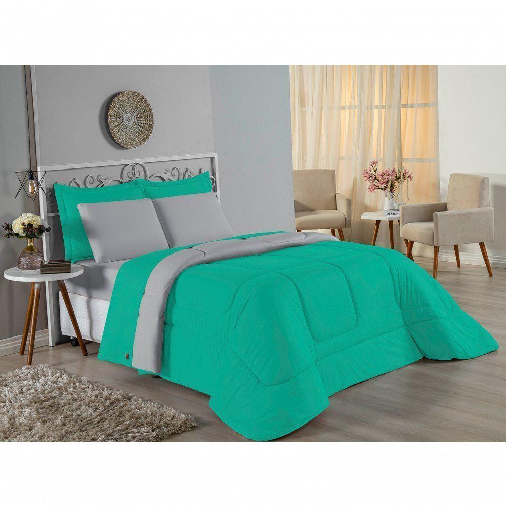 Edredom Solteiro Nobre 1 Peça Dupla Face 1,60m X 2,40m Malha 100% Algodão - Jade / Cinza