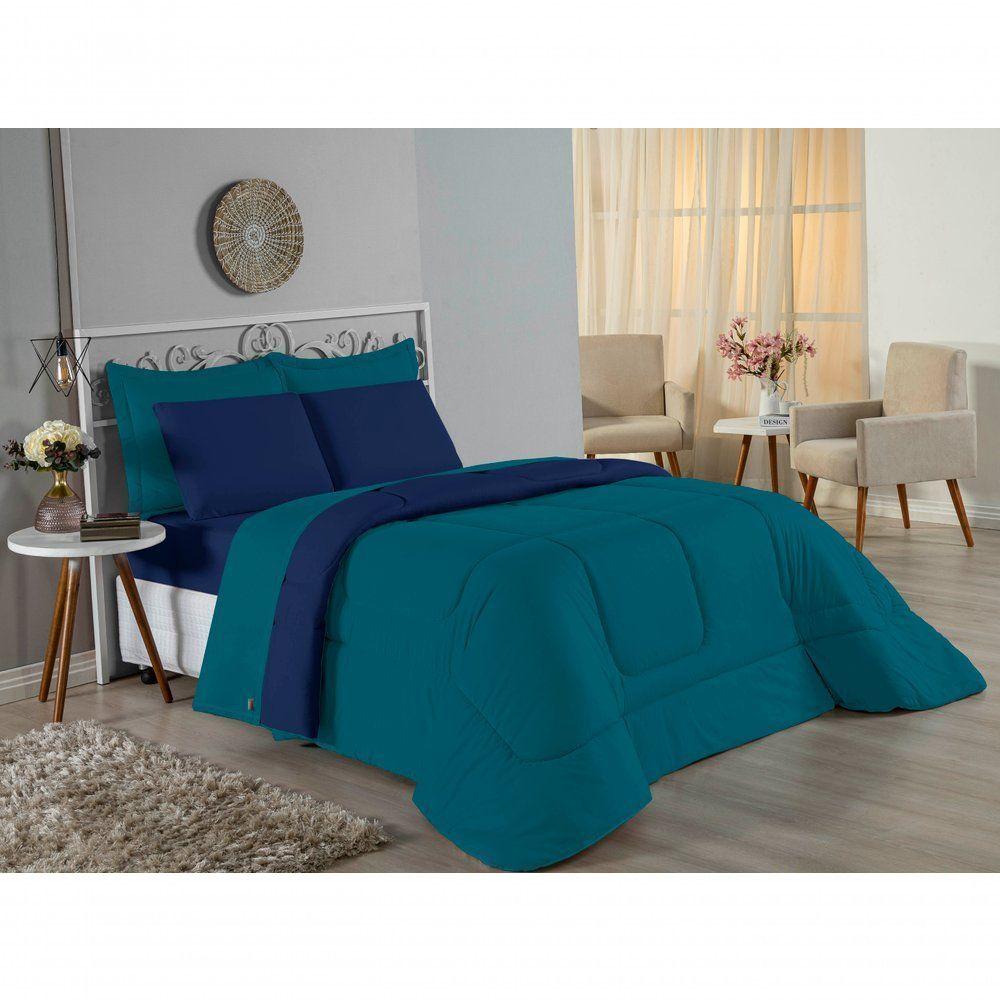 Edredom Solteiro Nobre 1 Peça Dupla Face 1,60m X 2,40m Malha 100% Algodão - Petróleo / Azul-marinho