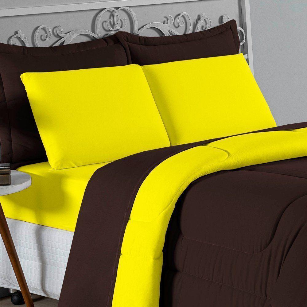 Kit Edredom Dupla Face + Jogo De Lençol Casal Nobre 6 Peças Malha 100% Algodão - Marrom / AmareloTransforme seu quarto em um ambiente de descanso luxuoso com o Kit Cama Completa Casal Nobre 6 Peças. A união perfeita entre a praticidade do dia a dia e o conforto superior da malha 100% algodão fio penteado.Por que este Kit é uma ótima escolha?- Toque Extremamente Macio: A confecção em Malha 100% Algodão Fio 30/1 Penteado proporciona uma sensação suave e natural, ideal para quem valoriza o conforto da pele.- Visual Sofisticado: O edredom dupla face e os dois porta travesseiros matelados conferem volume e elegância à cama, dispensando composições difíceis.- Durabilidade Superior: O fio penteado garante um tecido resistente, que mantém a aparência de novo e não forma bolinhas (anti-pilling).- Ajuste Perfeito: O lençol de baixo com elástico abraça colchões de até 30cm de altura, mantendo a cama sempre organizada.Produto composto por (Total 06 Peças):Do Kit Edredom (03 Peças):01 Edredom Casal Dupla Face: 2,00m x 2,20m02 Porta Travesseiros Matelados: 50cm x 70cmDo Jogo de Lençol (03 Peças):01 Lençol de Baixo com Elástico: 1,38m x 1,98m x 30cm02 Fronhas: 70cm x 50cmAtenção: Este kit é composto pelo jogo de cama essencial (lençol com elástico e fronhas) e não inclui o lençol de cima (sobre lençol).Composição:Tecido (Todas as peças): Malha 100% Algodão - Fio 30/1 PenteadoEnchimento (Edredom e Porta Travesseiros): 100% Poliéster (Edredom com fibra siliconada)Forro (Apenas Porta Travesseiros): 100% Polipropileno