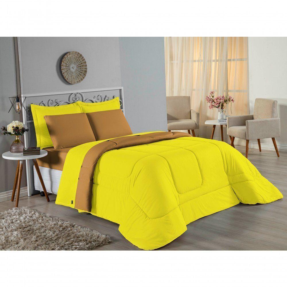 Kit Edredom Dupla Face + Jogo De Lençol Casal Nobre 7 Peças Malha 100% Algodão - Amarelo / CobreVista sua cama com elegância total e conforto absoluto com o Kit Cama Completa Casal Nobre 7 Peças. A solução definitiva para quem busca um enxoval completo, coordenado e com a maciez irresistível da malha de algodão.Por que este Kit é uma ótima escolha?- Jogo Completo 7 Peças: Inclui edredom, porta travesseiros decorativos e o jogo de cama completo (com lençol de cima e de baixo), oferecendo a experiência completa de conforto.- Malha Premium: Confeccionado em 100% Algodão Fio 30/1 Penteado, garantindo um toque suave, natural e livre de bolinhas.- Versatilidade na Decoração: O edredom dupla face permite variar o visual, enquanto o lençol de cima com vira adiciona charme à cama posta.- Aconchego e Praticidade: Une o aquecimento do edredom à facilidade do lençol com elástico, perfeito para o dia a dia.Produto composto por (Total 07 Peças):Do Kit Edredom (03 Peças):01 Edredom Casal Dupla Face: 2,00m x 2,20m02 Porta Travesseiros Matelados: 50cm x 70cmDo Jogo de Lençol (04 Peças):01 Lençol de Cima (Virol): 2,40m x 2,20m01 Lençol de Baixo com Elástico: 1,38m x 1,98m x 30cm02 Fronhas: 70cm x 50cmComposição:Tecido (Todas as peças): Malha 100% Algodão - Fio 30/1 PenteadoEnchimento (Edredom e Porta Travesseiros): 100% Poliéster (Edredom com fibra siliconada)Forro (Apenas Porta Travesseiros): 100% Polipropileno