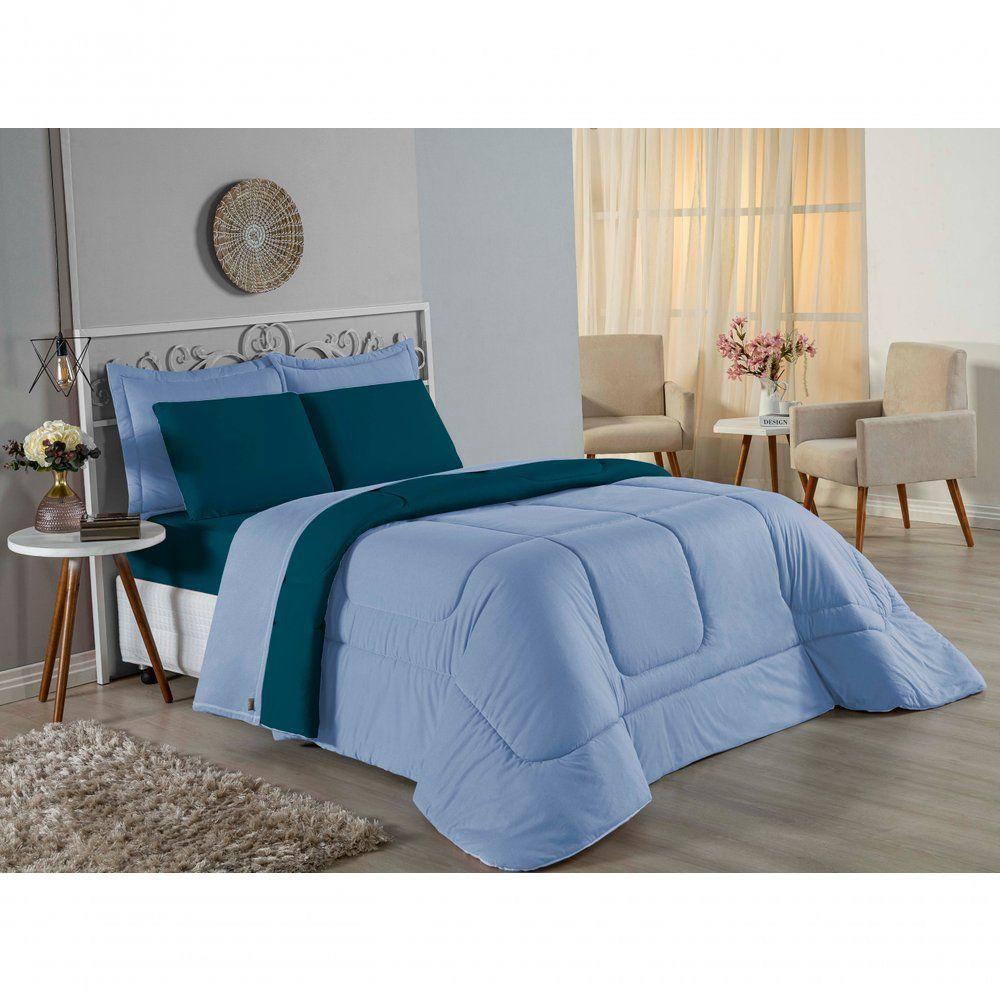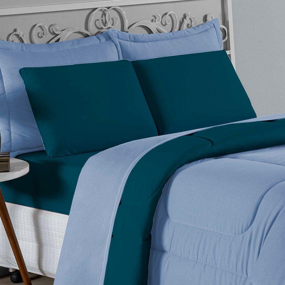 Kit Edredom Dupla Face + Jogo De Lençol Casal Nobre 7 Peças Malha 100% Algodão - Azul-bebê / PetróleoVista sua cama com elegância total e conforto absoluto com o Kit Cama Completa Casal Nobre 7 Peças. A solução definitiva para quem busca um enxoval completo, coordenado e com a maciez irresistível da malha de algodão.Por que este Kit é uma ótima escolha?- Jogo Completo 7 Peças: Inclui edredom, porta travesseiros decorativos e o jogo de cama completo (com lençol de cima e de baixo), oferecendo a experiência completa de conforto.- Malha Premium: Confeccionado em 100% Algodão Fio 30/1 Penteado, garantindo um toque suave, natural e livre de bolinhas.- Versatilidade na Decoração: O edredom dupla face permite variar o visual, enquanto o lençol de cima com vira adiciona charme à cama posta.- Aconchego e Praticidade: Une o aquecimento do edredom à facilidade do lençol com elástico, perfeito para o dia a dia.Produto composto por (Total 07 Peças):Do Kit Edredom (03 Peças):01 Edredom Casal Dupla Face: 2,00m x 2,20m02 Porta Travesseiros Matelados: 50cm x 70cmDo Jogo de Lençol (04 Peças):01 Lençol de Cima (Virol): 2,40m x 2,20m01 Lençol de Baixo com Elástico: 1,38m x 1,98m x 30cm02 Fronhas: 70cm x 50cmComposição:Tecido (Todas as peças): Malha 100% Algodão - Fio 30/1 PenteadoEnchimento (Edredom e Porta Travesseiros): 100% Poliéster (Edredom com fibra siliconada)Forro (Apenas Porta Travesseiros): 100% Polipropileno