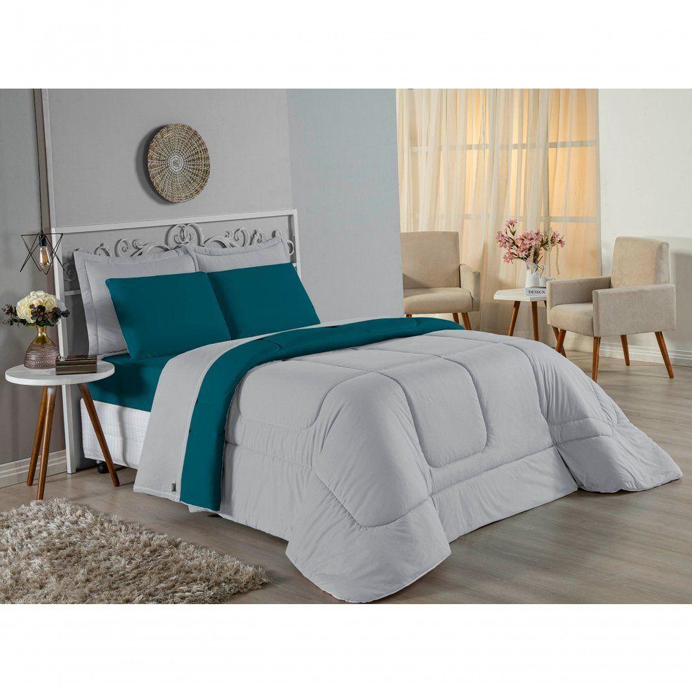 Kit Edredom Dupla Face + Jogo De Lençol Casal Nobre 7 Peças Malha 100% Algodão - Cinza / PetróleoVista sua cama com elegância total e conforto absoluto com o Kit Cama Completa Casal Nobre 7 Peças. A solução definitiva para quem busca um enxoval completo, coordenado e com a maciez irresistível da malha de algodão.Por que este Kit é uma ótima escolha?- Jogo Completo 7 Peças: Inclui edredom, porta travesseiros decorativos e o jogo de cama completo (com lençol de cima e de baixo), oferecendo a experiência completa de conforto.- Malha Premium: Confeccionado em 100% Algodão Fio 30/1 Penteado, garantindo um toque suave, natural e livre de bolinhas.- Versatilidade na Decoração: O edredom dupla face permite variar o visual, enquanto o lençol de cima com vira adiciona charme à cama posta.- Aconchego e Praticidade: Une o aquecimento do edredom à facilidade do lençol com elástico, perfeito para o dia a dia.Produto composto por (Total 07 Peças):Do Kit Edredom (03 Peças):01 Edredom Casal Dupla Face: 2,00m x 2,20m02 Porta Travesseiros Matelados: 50cm x 70cmDo Jogo de Lençol (04 Peças):01 Lençol de Cima (Virol): 2,40m x 2,20m01 Lençol de Baixo com Elástico: 1,38m x 1,98m x 30cm02 Fronhas: 70cm x 50cmComposição:Tecido (Todas as peças): Malha 100% Algodão - Fio 30/1 PenteadoEnchimento (Edredom e Porta Travesseiros): 100% Poliéster (Edredom com fibra siliconada)Forro (Apenas Porta Travesseiros): 100% Polipropileno