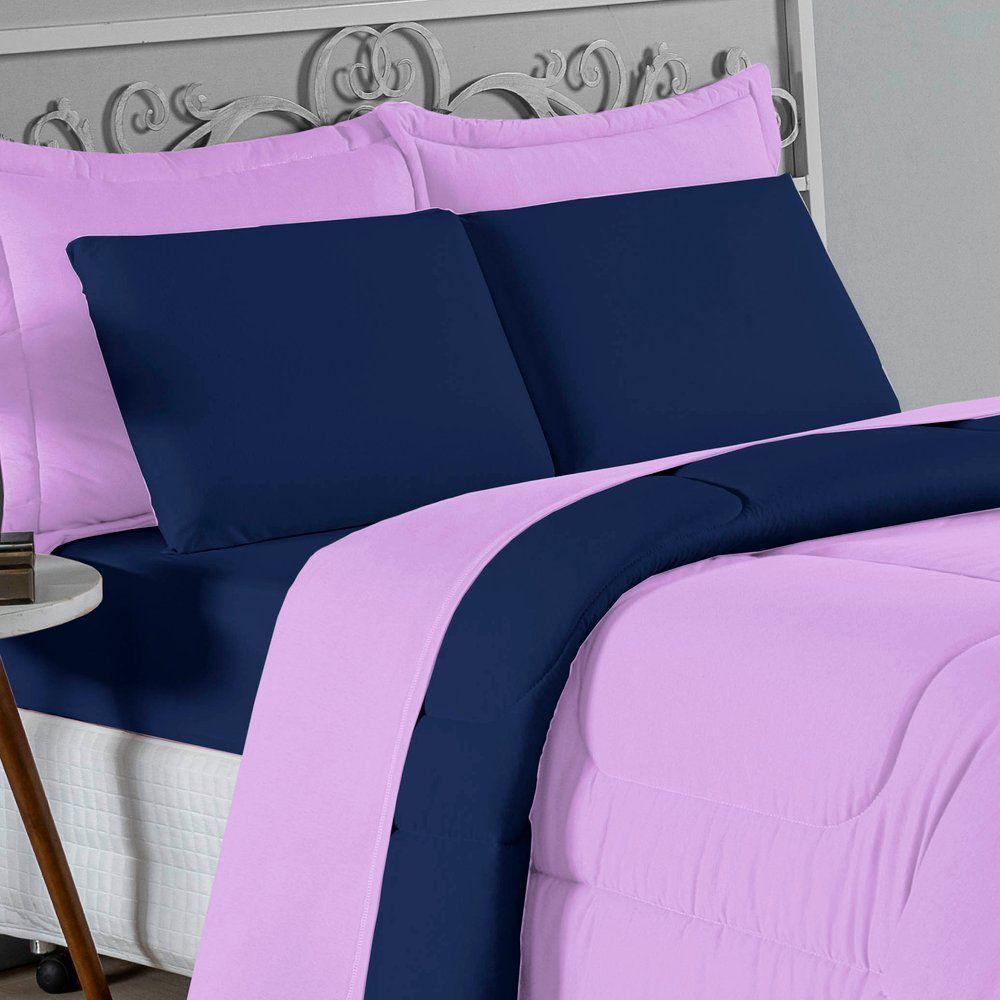 Kit Edredom Dupla Face + Jogo De Lençol Casal Nobre 7 Peças Malha 100% Algodão - Lilás / Azul-marinhoVista sua cama com elegância total e conforto absoluto com o Kit Cama Completa Casal Nobre 7 Peças. A solução definitiva para quem busca um enxoval completo, coordenado e com a maciez irresistível da malha de algodão.Por que este Kit é uma ótima escolha?- Jogo Completo 7 Peças: Inclui edredom, porta travesseiros decorativos e o jogo de cama completo (com lençol de cima e de baixo), oferecendo a experiência completa de conforto.- Malha Premium: Confeccionado em 100% Algodão Fio 30/1 Penteado, garantindo um toque suave, natural e livre de bolinhas.- Versatilidade na Decoração: O edredom dupla face permite variar o visual, enquanto o lençol de cima com vira adiciona charme à cama posta.- Aconchego e Praticidade: Une o aquecimento do edredom à facilidade do lençol com elástico, perfeito para o dia a dia.Produto composto por (Total 07 Peças):Do Kit Edredom (03 Peças):01 Edredom Casal Dupla Face: 2,00m x 2,20m02 Porta Travesseiros Matelados: 50cm x 70cmDo Jogo de Lençol (04 Peças):01 Lençol de Cima (Virol): 2,40m x 2,20m01 Lençol de Baixo com Elástico: 1,38m x 1,98m x 30cm02 Fronhas: 70cm x 50cmComposição:Tecido (Todas as peças): Malha 100% Algodão - Fio 30/1 PenteadoEnchimento (Edredom e Porta Travesseiros): 100% Poliéster (Edredom com fibra siliconada)Forro (Apenas Porta Travesseiros): 100% Polipropileno
