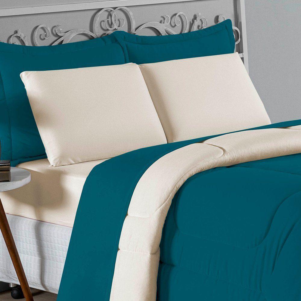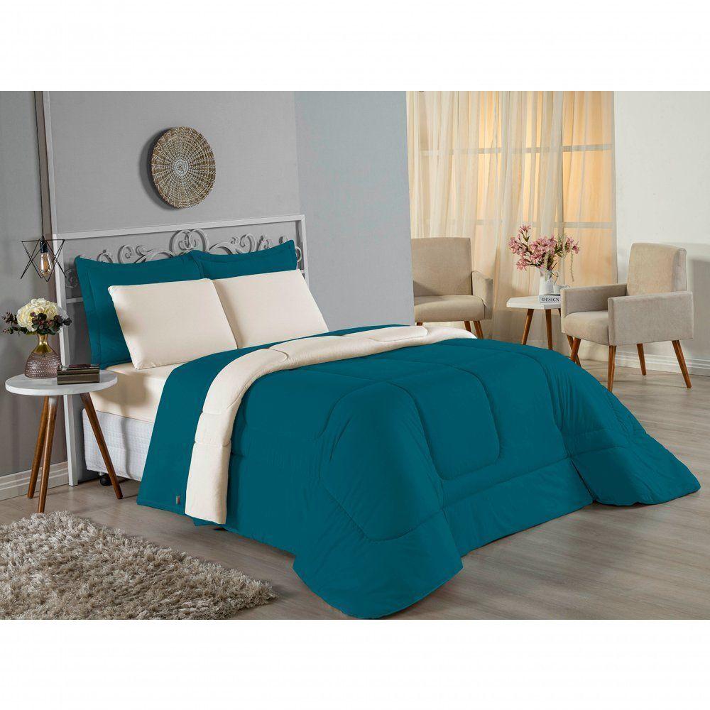 Kit Edredom Dupla Face + Jogo De Lençol Casal Nobre 7 Peças Malha 100% Algodão - Petróleo / PalhaVista sua cama com elegância total e conforto absoluto com o Kit Cama Completa Casal Nobre 7 Peças. A solução definitiva para quem busca um enxoval completo, coordenado e com a maciez irresistível da malha de algodão.Por que este Kit é uma ótima escolha?- Jogo Completo 7 Peças: Inclui edredom, porta travesseiros decorativos e o jogo de cama completo (com lençol de cima e de baixo), oferecendo a experiência completa de conforto.- Malha Premium: Confeccionado em 100% Algodão Fio 30/1 Penteado, garantindo um toque suave, natural e livre de bolinhas.- Versatilidade na Decoração: O edredom dupla face permite variar o visual, enquanto o lençol de cima com vira adiciona charme à cama posta.- Aconchego e Praticidade: Une o aquecimento do edredom à facilidade do lençol com elástico, perfeito para o dia a dia.Produto composto por (Total 07 Peças):Do Kit Edredom (03 Peças):01 Edredom Casal Dupla Face: 2,00m x 2,20m02 Porta Travesseiros Matelados: 50cm x 70cmDo Jogo de Lençol (04 Peças):01 Lençol de Cima (Virol): 2,40m x 2,20m01 Lençol de Baixo com Elástico: 1,38m x 1,98m x 30cm02 Fronhas: 70cm x 50cmComposição:Tecido (Todas as peças): Malha 100% Algodão - Fio 30/1 PenteadoEnchimento (Edredom e Porta Travesseiros): 100% Poliéster (Edredom com fibra siliconada)Forro (Apenas Porta Travesseiros): 100% Polipropileno