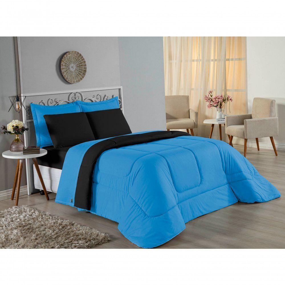 Kit Edredom Dupla Face + Jogo De Lençol Casal Nobre 7 Peças Malha 100% Algodão - Turquesa / PretoVista sua cama com elegância total e conforto absoluto com o Kit Cama Completa Casal Nobre 7 Peças. A solução definitiva para quem busca um enxoval completo, coordenado e com a maciez irresistível da malha de algodão.Por que este Kit é uma ótima escolha?- Jogo Completo 7 Peças: Inclui edredom, porta travesseiros decorativos e o jogo de cama completo (com lençol de cima e de baixo), oferecendo a experiência completa de conforto.- Malha Premium: Confeccionado em 100% Algodão Fio 30/1 Penteado, garantindo um toque suave, natural e livre de bolinhas.- Versatilidade na Decoração: O edredom dupla face permite variar o visual, enquanto o lençol de cima com vira adiciona charme à cama posta.- Aconchego e Praticidade: Une o aquecimento do edredom à facilidade do lençol com elástico, perfeito para o dia a dia.Produto composto por (Total 07 Peças):Do Kit Edredom (03 Peças):01 Edredom Casal Dupla Face: 2,00m x 2,20m02 Porta Travesseiros Matelados: 50cm x 70cmDo Jogo de Lençol (04 Peças):01 Lençol de Cima (Virol): 2,40m x 2,20m01 Lençol de Baixo com Elástico: 1,38m x 1,98m x 30cm02 Fronhas: 70cm x 50cmComposição:Tecido (Todas as peças): Malha 100% Algodão - Fio 30/1 PenteadoEnchimento (Edredom e Porta Travesseiros): 100% Poliéster (Edredom com fibra siliconada)Forro (Apenas Porta Travesseiros): 100% Polipropileno