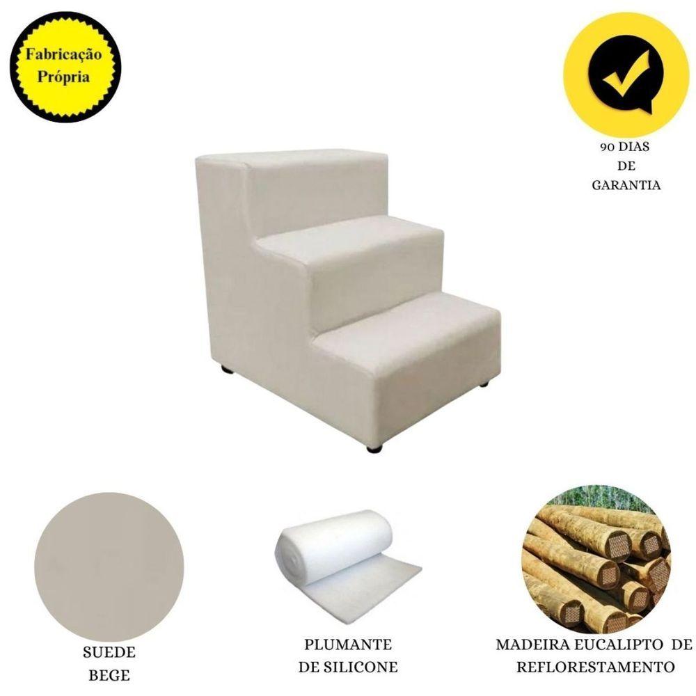 Escada Escadinha Pet Cachorro 3 Degraus Rampa Suede Grace Bege