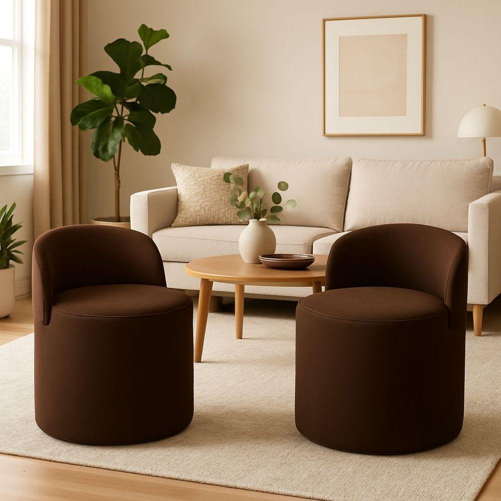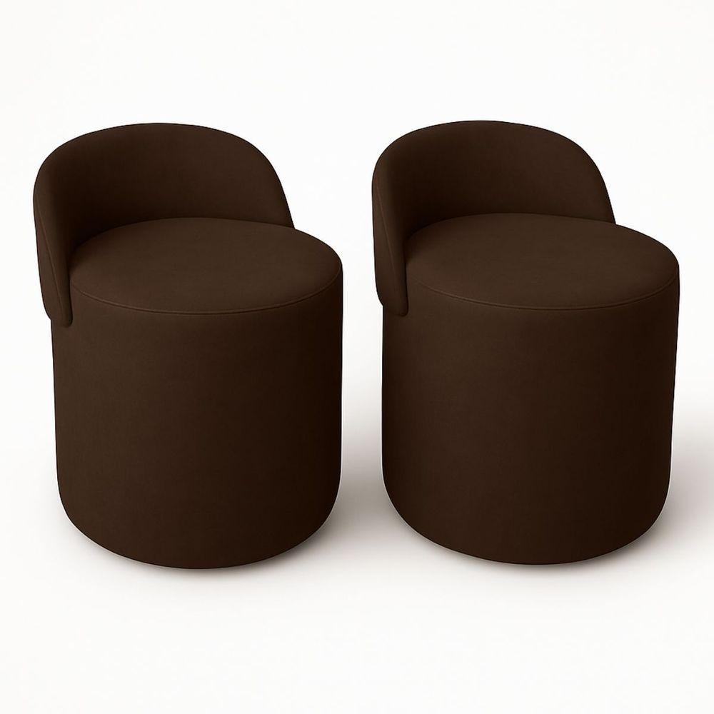Kit 2 Puff Orgânico Encosto Suede Redondo Quarto Sala Estar Marrom