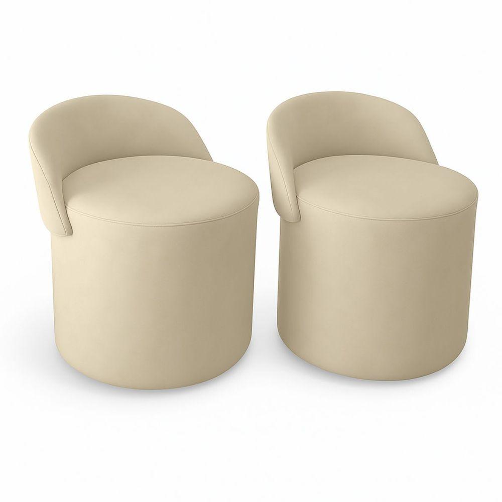 Kit 2 Puff Orgânico Encosto Suede Redondo Quarto Sala Estar Bege