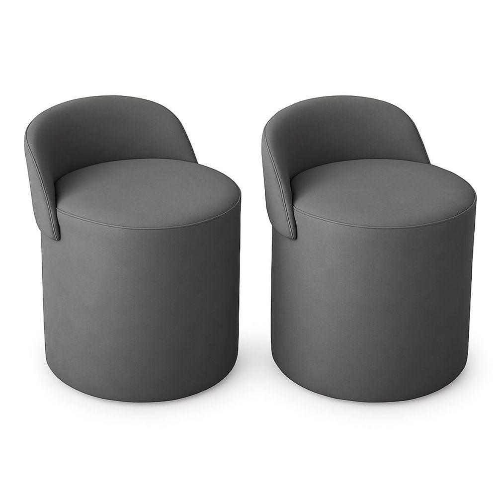 Kit 2 Puff Encosto Suede Redondo Sala Banco Orgânico Quarto Cinza Escuro
