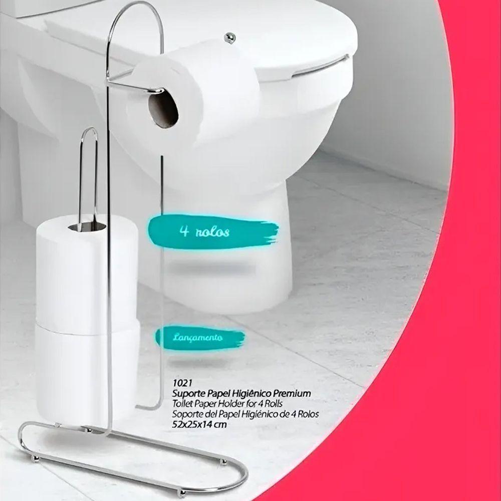 Kit 2 Porta Papel Higiênico De Chão Cromado Para 4 Rolos Mali