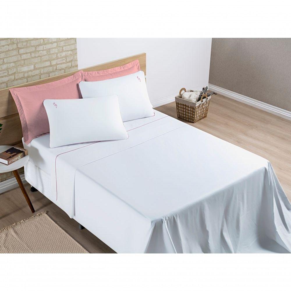 Jogo De Cama Lençol Percal 200 Fios 100% Algodão Bordado Liana Casal Padrão 04 Peças - Branco