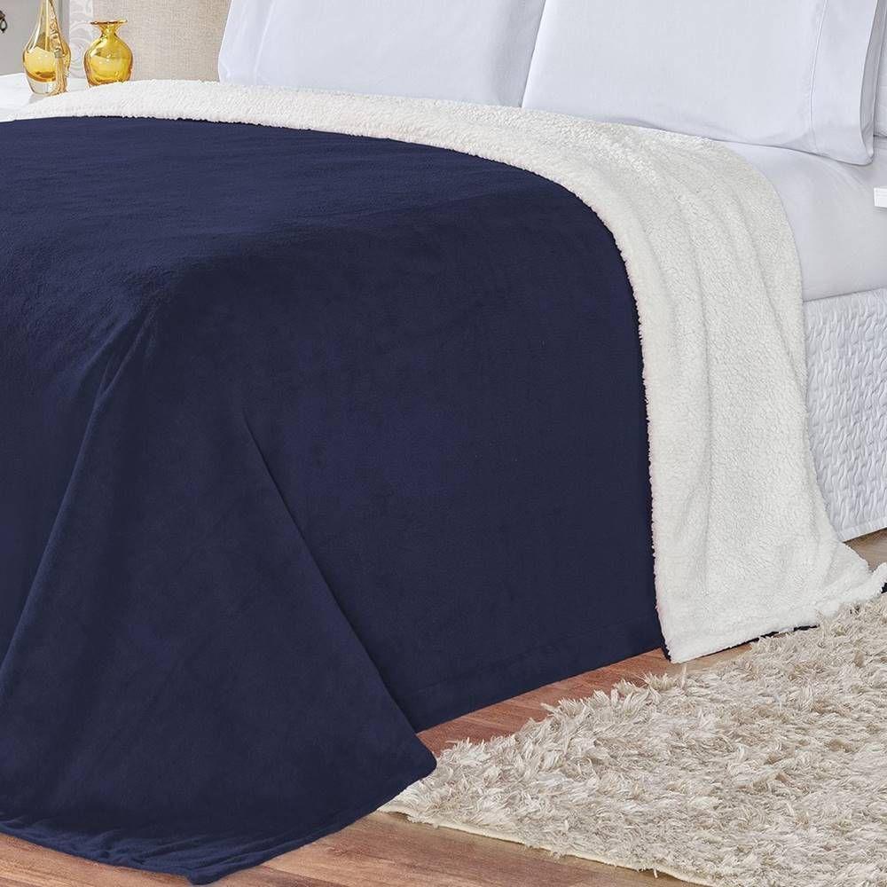 Cobertor Pele De Carneiro Sherpa Alaska Queen 01 Peça - Marinho.