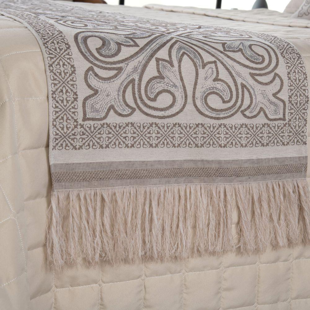 Kit Peseira Grécia 5 Peças King 60% Algodão - 40% Poliéster Tecido Jacquard Acompanha Almofadas Cheias - Cáqui