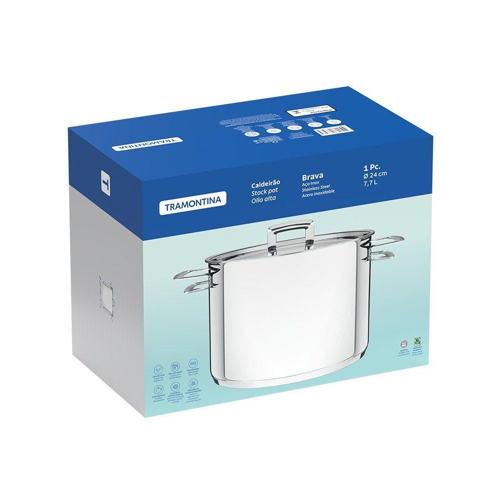 Caldeirão Fundo Triplo Tramontina Brava 62405240 InoxCaldeirão Fundo Triplo Tramontina Brava 62405240 Inox -Características Gerais do Produto:Dimensões AxLxP (mm): 213x3380x257Material: Aço InoxTecnologia da Panela: Fundo TriploLinha: BravaTampa: Sim, com saída de vaporCapacidade da Panela: 7,7LObservação: com tampa planaPode ir ao forno?: Sim, para gratinar ou finalizar pratos na temperatura máxima de 260°C.Pode ir à Máquina de Lavar Louças?: SimTipo de Fogão: Gás, elétrico, vitrocerâmico e induçãoAcompanha o produto: - 1 Caldeirão Ø 24cm Garantia: - 90 dias junto ao fabricante
