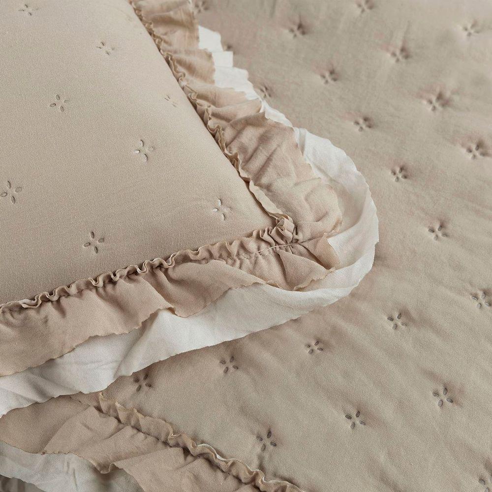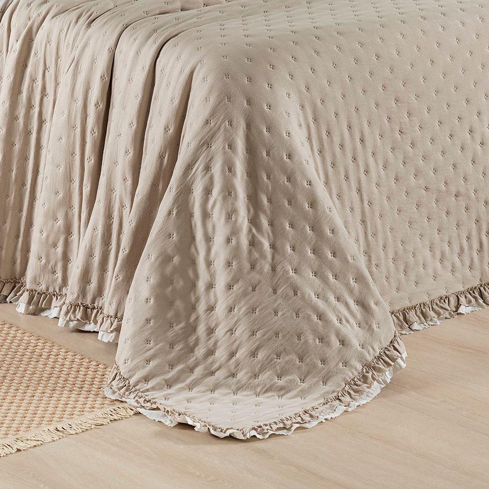 Cobre Leito King Micropercal 200 Fios Com Babado Malvinni Caqui - 3 PeçasAdicione um toque de charme atemporal ao seu quarto com a Colcha Malvinni com babado. ;Este modelo combina perfeitamente estilo e funcionalidade, ideal para transformar sua cama no ponto central da decoração. Com um design acolchoado em padrão geométrico delicado e acabamento impecável, a colcha oferece elegância e praticidade para o dia a dia. ;Confeccionada em tecido premium, leve, macio e de alta durabilidade, nossa colcha é ideal para todas as estações do ano. ;Os detalhes em babados delicados nas bordas dão um ar romântico e clássico ao conjunto, perfeito para composições que variam do moderno ao tradicional. ;O design em quadrados geométricos adiciona textura ao ambiente, além de proporcionar uma estética refinada e elegante. ;Acompanha porta travesseiros coordenadas com o mesmo acabamento e babados, garantindo uma composição harmoniosa. ;Contém:01 Colcha C/ Babado 2,80m x 2,60m.02 Porta-Travesseiros 50cm x 70cm. ;tecido micropercal 200 fios 100 % poliéster