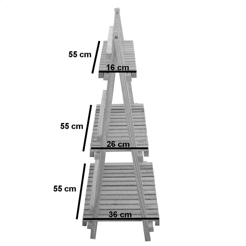 Floreira Estante Madeira Maciça Natural JardimMHM MÓVEIS BRASILA Floreira de Madeira Maciça com três prateleiras combina funcionalidade e charme rústico.Com um design semelhante ao de uma estante, suas prateleiras são removíveis e ripadas, permitindo ventilação adequada para as plantas.As prateleiras possuem travas de segurança que impedem que se soltem acidentalmente, garantindo estabilidade.A estrutura dobrável facilita o transporte e armazenamento, tornando-a prática e versátil. Ideal para quem deseja expor plantas de maneira organizada e elegante, sem abrir mão da durabilidade e beleza da madeira natural.FICHA TÉCNICA:FLOREIRA:Altura: 96 cmLargura/Comprimento: 63 cmProfundidade: 36 cmPRATELEIRAS:Prateleira 1Largura/Comprimento: 55 cmProfundidade: 16 cmPrateleira 2Largura/Comprimento: 55 cmProfundidade: 26 cmPrateleira 3Largura/Comprimento: 55 cmProfundidade: 36 cm