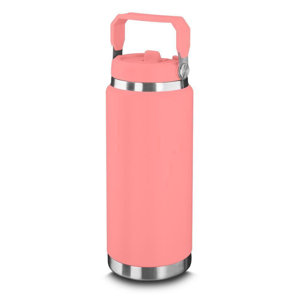 Garrafa Térmica Parede Dupla Em Aço Inox Rosa 900ml Com Alça