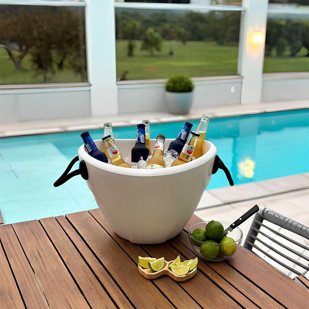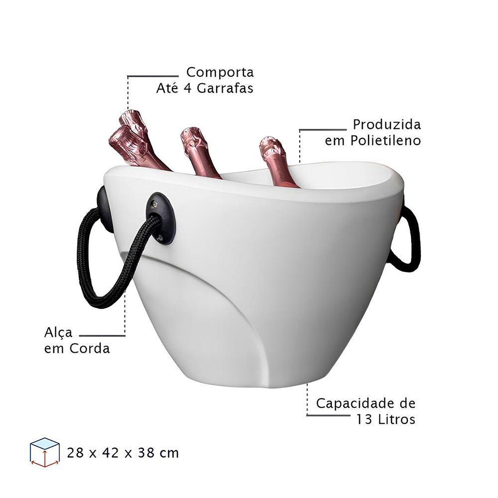 Balde Elegante De Gelo 13l - Ideal Para Festas E Eventos Com Alça PráticaEssa champanheira é confeccionada em polietileno, um material altamente durável e resistente. Seu design exclusivo combina beleza e praticidade, com um elegante acabamento fosco.Tem capacidade para acomodar confortavelmente 4 garrafas. Ideal para uso em buffets, eventos corporativos, festas de casamento e aniversários, na praia, e também para receber e servir amigos em casa. Perfeita para refrigerar diversos tipos de bebidas, como cerveja, espumantes e destilados.- Tipo: Champanheira de mesa- Capacidade de Garrafas: 4 unidades de espumante- Capacidade: 13 litros- Cor: BrancoEspecificações do produto:Informações Técnicas:- Dimensões (Altura x Largura x Profundidade): 28x42x38 cm- Material: Polietileno- Peso do Produto: 2 kg- Garantia: 3 mesesCuidados:- Limpar com pano úmido e macio.- Evitar contato com produtos químicos e abrasivos.