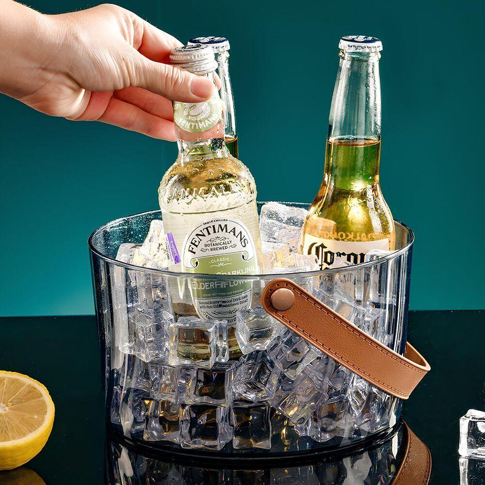 Balde Elegante Em Acrílico Com Alça De Couro - Estilo E Praticidade Para Suas Bebidas!