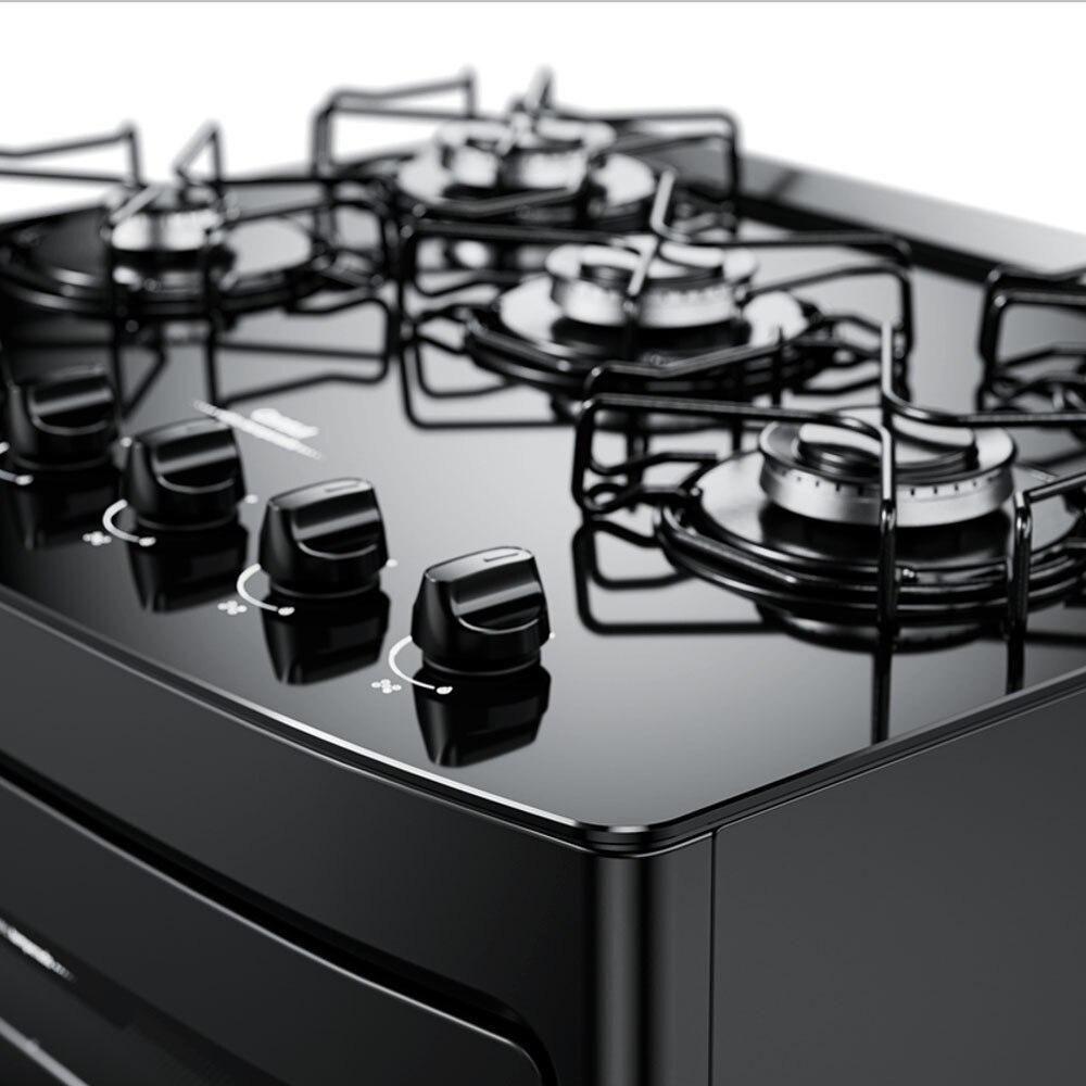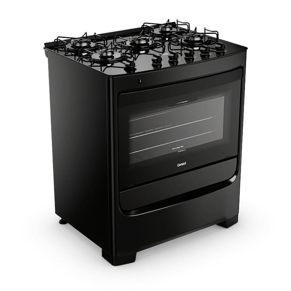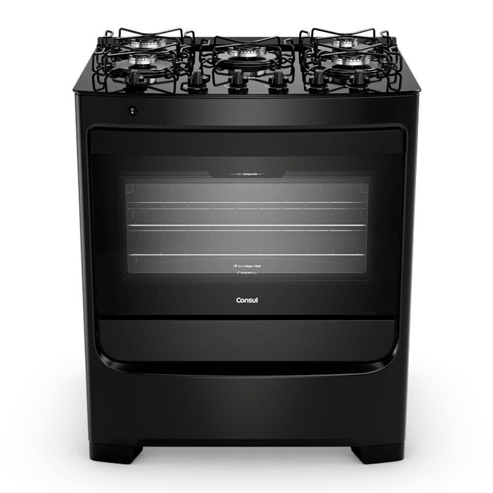 Fogão De Piso Consul 5 Bocas CFS5VBEUNA Acendimento Automático Mesa De Vidro Preto Bivolt
