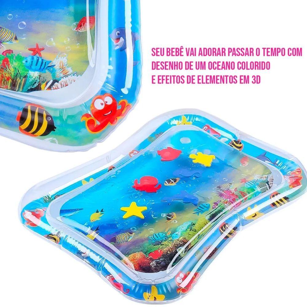Tapete De Água Para Bebê Inflável Brinquedo Educativo Com Água Proporcione momentos de pura diversão e aprendizado para o seu bebê com o Tapete Inflável Infantil DDG Toys!Desenvolvido especialmente para estimular a coordenação motora, a curiosidade e o desenvolvimento sensorial, esse tapete aquático cria uma experiência única de brincadeira.Ao ser preenchido com água, os peixinhos coloridos se movem suavemente, despertando o interesse visual e tátil do bebê, que vai adorar apertar e explorar cada cantinho.Fabricado em material resistente, macio e totalmente seguro, é ideal para ser usado durante o “tummy time”, ajudando a fortalecer os músculos do pescoço, costas e braços de forma divertida.Com design temático do fundo do mar, cores vibrantes e textura agradável, o tapete transforma qualquer momento em uma descoberta encantadora.Perfeito para usar em casa, levar em viagens ou presentear em chás de bebê, ele garante risadas e estímulos importantes desde cedo.Especificações:Dimensões: 69cm (largura) x 50cm (comprimento) x 8cm (altura)Composição: PVC resistente e atóxicoIdade recomendada: +2 mesesCor: AzulRegistro INMETRO: 004725/2023Contém:01 Tapete Inflável Infantil com Temática Aquática