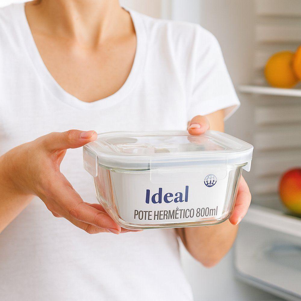 Pote Hermético De Vidro Quadrado 800 Ml Vasilha Com Tampa Mantimentos Marmitex Microondas Freezer