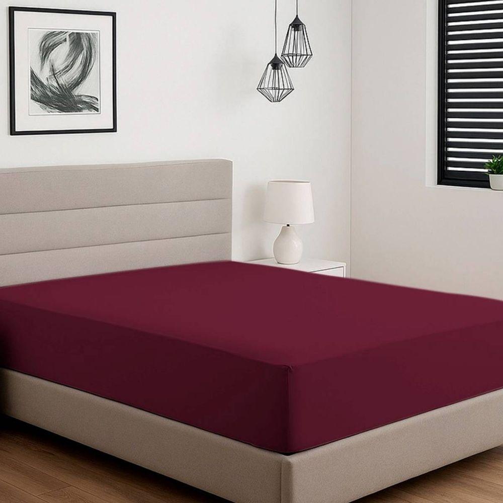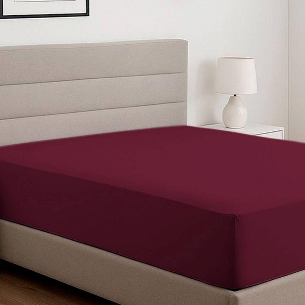 Lençol De Elástico Solteiro Malha Liso Vivaldi 100% Algodão Merlot