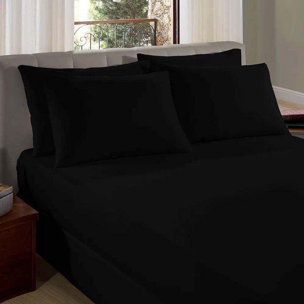 Lençol De Elástico Malha Casal Liso Vivaldi 100% Algodão Preto