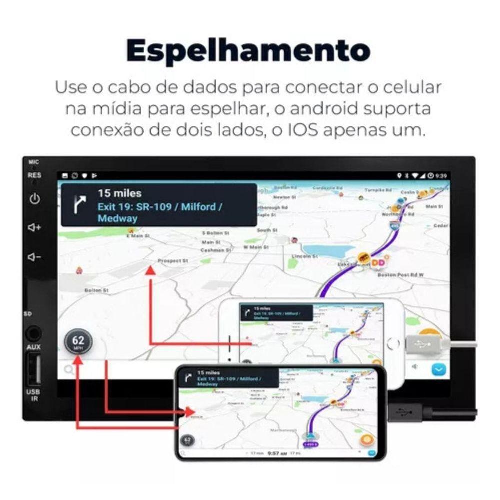 Central Multimídia Mp5 2din Gol Parati Saveiro G4 Camera TelPRUDEN AUTO PARTS:Somos a PRUDEN AUTO PARTS, uma empresa especializada em vendas online. Temos como compromisso a satisfação de nossos clientes, na busca por melhores preços, produtos de qualidade e transparência em serviços. Comprando conosco você terá a garantia que receberá seu produto nas seguintes condições:=> ENVIO EM ATÉ 24 HORAS ÚTEIS=> PRODUTO LACRADO=> PRODUTO ORIGINALPRUDEN AUTO PARTS:Somos a PRUDEN AUTO PARTS, uma empresa especializada em vendas online. Temos como compromisso a satisfação de nossos clientes, na busca por melhores preços, produtos de qualidade e transparência em serviços. Comprando conosco você terá a garantia que receberá seu produto nas seguintes condições:=> ENVIO EM ATÉ 24 HORAS ÚTEIS=> PRODUTO LACRADO=> PRODUTO ORIGINAL=> GARANTIA DO VENDEDOR=> PRODUTO NOVO=> NOTA FISCAL IMPRESSAFicou alguma dúvida? estamos à disposição pelo campo de mensagens!SOBRE O PRODUTO:Veículos Compatíveis:Gol G4: 2005 até 2014Parati G4: 2005 até 2012Saveiro G4: 2005 até 2009>>> Sobre o Produto:Seu carro precisa de uma CENTRAL MULTIMÍDIA MP5 PLAYER para deixar seus momentos no trânsito menos estressantes e mais divertidos, por isso, aposte nesta belíssima CENTRAL MULTIMÍDIA com tela de 7 polegadas TOUCH SCREEN para você ver seus vídeos, clipes e muito mais!>>> Especificação Técnicas:- Tela Full Touch Screen 7 Polegadas Capacitiva;- Resolução da Tela: 800x 480 Pixels;- Botões com Iluminação em LED RGB;- Controle de Luminosidade da Tela;- Entradas Frontais USB e Micro SD;- Entrada Auxiliar P2;- Reproduz Vários Formatos de Áudio;- Reproduz Vídeos em até 1080p;- Função Bluetooth para Músicas, Chamadas e Contatos;- Possui Microfone Integrado;- Espelhamento de Tela Através de USB;- Possui Busca por Pasta;- Acompanha Câmera de Ré Grátis;- Sintonização de Rádio FM;- Equalizador Pré-Definido (Jazz, Pop, Rock e Classic);- Potência de Operação: 12V;- Dimensões Aproximadas (LxAxP): 18x10,5x6,5cm;- Não Possuí Leitor de CD/DVD;- Marca: ROADSTAR; JR8; H-TECH; E-TECH; FIRST OPTION; FP; TIGER.Obs: Não possuí marca fixa, o multimídia é enviado de acordo com a disponibilidade em estoque uma das marcas acima! Sendo que todas tem as mesmas configurações e funções. Conforme imagens do anúncio apenas o DESIGN dos botões e dos controles podem variar de acordo com a disponibilidade em estoque.Este aparelho também possuí sistema configurável para utilizar os COMANDOS DE VOLANTE originais do seu veículo, no entanto, para configurar é necessário adquirir uma INTERFACE DE COMANDO DE VOLANTE específica que não está inclusa no kit. Solicite o link no campo de perguntas!>>> Usando Seu Celular Via Cabo USB Você Pode Espelhar a tela e os Aplicativos! Por Exemplo: GPS (GOOGLE MAP`S OU WAZE); YOUTUBE; DISNEY PLUS; NETFLIX; WHATSAPP; SPOTIFY entre outros!- COMO FAZER O ESPELHAMENTO EM CELULARES ANDROID? (SMARTPHONE)Em celulares ANDROID é necessário ativar a DEPURAÇÃO USB, consulte na internet como fazer esse processo! É simples, mas cada modelo de celular tem seu proprio método de ativar esta função. Logo após, conecte o cabo USB original do celular em ambos os aparelhos e autorize o espelhamento na tela do celular!Caso seu celular não tenha o suporte necessário para espelhar, automaticamente aparecerá na tela do celular um aviso para abrir um link e instalar o APP de espelhamento! Após instalado, remova o cabo USB, abra o APP de espelhamento, volte a tela inicial do celular deixando o APP em segundo plano e coloque novamente o cabo USB e pronto! Você já verá a tela do seu celular no multimídia!Lembre-se que para a imagem funcionar em tela cheia ela também deve estar em tela cheia no celular! Como quando viramos o celular de lado e a imagem toma conta de toda a tela ao assistir videos, utilizar GPS e etc.- COMO FAZER O ESPELHAMENTO EM CELULARES IOS? (IPHONE)Em celulares com sistema IOS não é necessário instalar nenhum APP ou fazer configurações, apenas conectar o cabo USB original do celular em ambos aparelhos e autorizar na tela do iPhone.Lembre-se que para a imagem funcionar em tela cheia ela também deve estar em tela cheia no celular! Como quando viramos o celular de lado e a imagem toma conta de toda a tela ao assistir videos, utilizar GPS e etc.Obs: Se mesmo após seguir as instruções acima você não conseguir fazer o espelhamento significa que seu celular recebeu uma atualização recente de sistema, e será necessário aguardar a nova atualização da CENTRAL MULTIMÍDIA para espelhar! Você pode conferir se já está disponível para download com nossa equipe no CHAT nos detalhes de sua compra na opção ENVIAR MENSAGEM.>>> Conteúdo da Embalagem:01 UND - Central Multimídia MP5 2 Din 7 Polegadas;01 KIT - Chicotes de Alimentação;01 KIT - Câmera de Ré (GRÁTIS);01 UND - Moldura 2 Din de Acabamento Específica (GRÁTIS).Obs: Imagens Meramente Ilustrativas.IMPORTANTE>>> SOBRE A INSTALAÇÃO!1°- ESTE KIT NÃO ACOMPANHA CHICOTE ADAPTADOR PARA CONEXÃO PLUG AND PLAY, POIS É UM ITEM OPCIONAL DA INSTALAÇÃO, O CHICOTE DESTE APARELHO PODE SER INSTALADO FIO A FIO NO CHICOTE DO VEÍCULO. CASO QUEIRA ADQUIRIR A PARTE O CHICOTE ADAPTADOR PLUG AND PLAY SOLICITE O LINK NO CAMPO DE PERGUNTAS.2º - É OBRIGATÓRIO ATIVAR A FUNÇÃO PÓS CHAVE, OU SEJA, A CENTRAL MULTIMÍDIA IRÁ LIGAR E DESLIGAR AUTOMATICAMENTE AO GIRAR A CHAVE NA IGNIÇÃO DO VEÍCULO! ESSA FUNÇÃO PREVINE QUE A PLACA BLUETOOTH ENTRE EM PROTEÇÃO OU QUE TENHA UM CONSUMO DE BATERIA EXCESSIVO.3º - PARA QUE SEJA VÁLIDA A GARANTIA DESDE PRODUTO A INSTALAÇÃO DEVE SER FEITA POR UM PROFISSIONAL CAPACITADO NA ÁREA! SEMPRE SOLICITE A NOTA FISCAL DO SERVIÇO (NÃO NOS RESPONSABILIZAMOS POR VALORES GASTOS EM SERVIÇOS DE INSTALAÇÕES OU REMOÇÃO DO APARELHO).4º - NÃO NOS RESPONSABILIZAMOS POR MAL USO DO PRODUTO BEM COMO CONFIGURAÇÃO DE APARELHOS CELULARES PARA UTILIZAR A FUNÇ