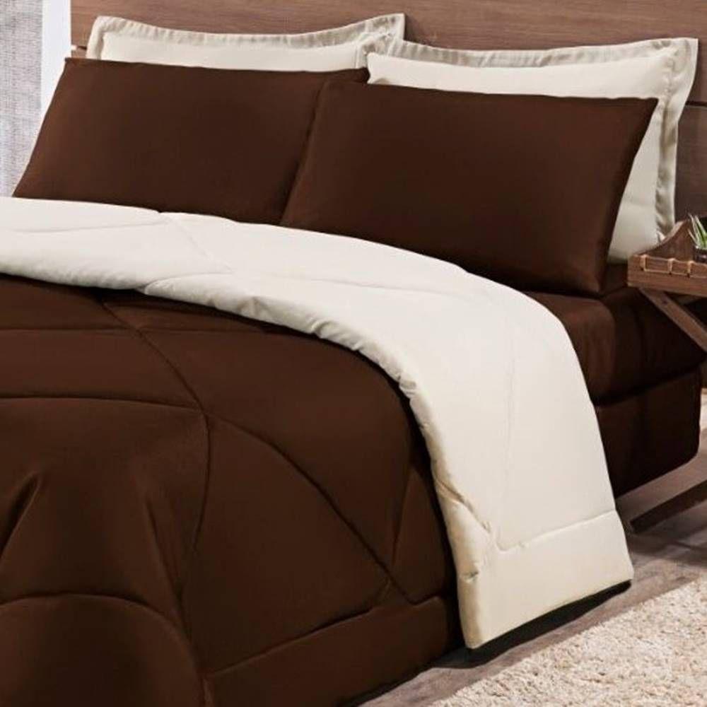 Kit Edredom + Jogo De Lençol Aconchego Look House Dupla Face Solteiro 04 Peças - Marrom/ PalhaO Kit Look House, traz para seu ambiente um conjunto de roupas de cama com todas as peças que você precisa para deixar seu ambiente aconchegante, sem contar o conforto para as noites de sono. Produto composto por:01 Edredom 2,40m x 1,60m01 Lençol de baixo c/ elástico para colchão de 1,88m x 88cm x 0,30cm01 Porta travesseiros 70cm x 50cm01 Fronhas de 70cm x 50cm Composição tecido: 80% Algodão / 20% Poliéster