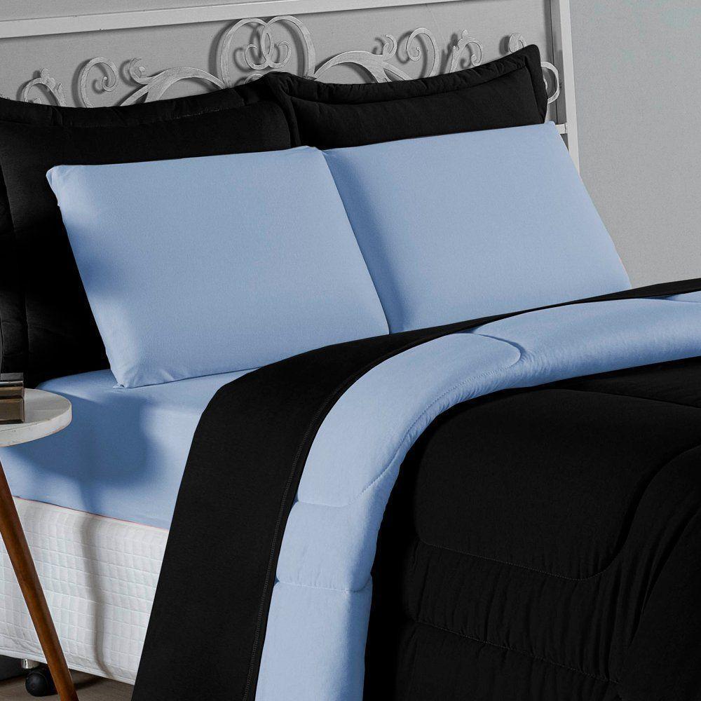 Edredom Casal Nobre 1 Peça Dupla Face 2,00m X 2,20m Malha 100% Algodão - Preto / Azul-bebêLeve o máximo de conforto para o seu quarto com o Edredom Casal Nobre. A união perfeita entre a elegância do design liso e a maciez incomparável da malha 100% algodão.Por que o Edredom Casal Nobre é uma ótima escolha?- Conforto Natural: Produzido em Malha 100% Algodão com Fio 30/1 Penteado, proporciona um toque extremamente suave e respirável, ideal para todas as estações.- Dupla Face Versátil: Com dois lados lisos e utilizáveis, você ganha praticidade para renovar a decoração da cama sempre que desejar.- Alta Durabilidade: O tratamento de fio penteado remove impurezas e fibras curtas, garantindo um tecido mais resistente, que não forma bolinhas (anti-pilling) e mantém a aparência de novo por muito mais tempo.- Aconchego Garantido: O enchimento em manta siliconada oferece o volume e o isolamento térmico perfeitos para noites de sono reparadoras.Produto composto por (Total 01 Peça):01 Edredom Casal Dupla Face 2,00m x 2,20mComposição:Tecido: Malha 100% Algodão - Fio 30/1 PenteadoEnchimento: 100% Poliéster Siliconada