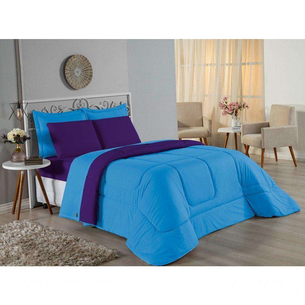 Edredom Casal Nobre 1 Peça Dupla Face 2,00m X 2,20m Malha 100% Algodão - Turquesa / RoxoLeve o máximo de conforto para o seu quarto com o Edredom Casal Nobre. A união perfeita entre a elegância do design liso e a maciez incomparável da malha 100% algodão.Por que o Edredom Casal Nobre é uma ótima escolha?- Conforto Natural: Produzido em Malha 100% Algodão com Fio 30/1 Penteado, proporciona um toque extremamente suave e respirável, ideal para todas as estações.- Dupla Face Versátil: Com dois lados lisos e utilizáveis, você ganha praticidade para renovar a decoração da cama sempre que desejar.- Alta Durabilidade: O tratamento de fio penteado remove impurezas e fibras curtas, garantindo um tecido mais resistente, que não forma bolinhas (anti-pilling) e mantém a aparência de novo por muito mais tempo.- Aconchego Garantido: O enchimento em manta siliconada oferece o volume e o isolamento térmico perfeitos para noites de sono reparadoras.Produto composto por (Total 01 Peça):01 Edredom Casal Dupla Face 2,00m x 2,20mComposição:Tecido: Malha 100% Algodão - Fio 30/1 PenteadoEnchimento: 100% Poliéster Siliconada