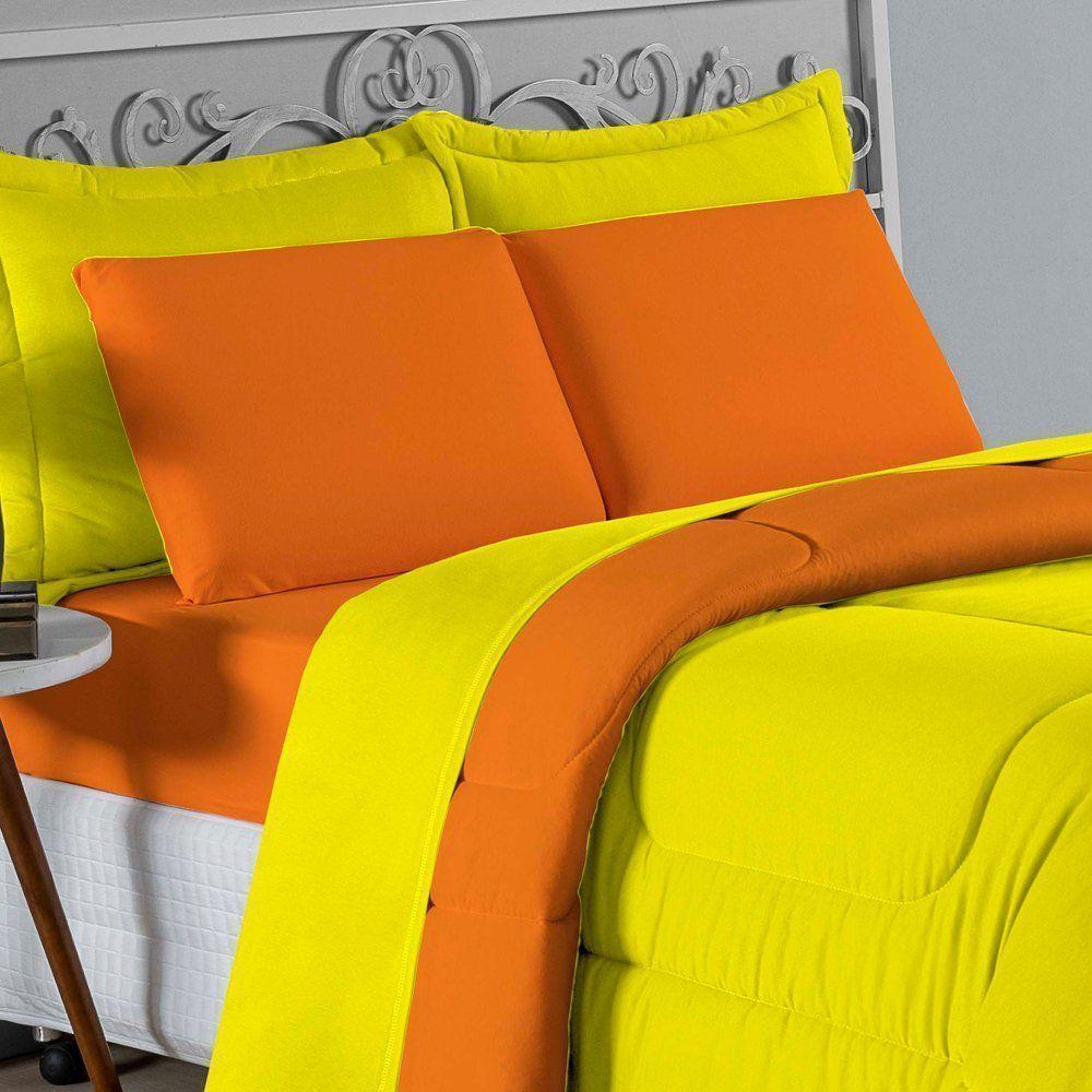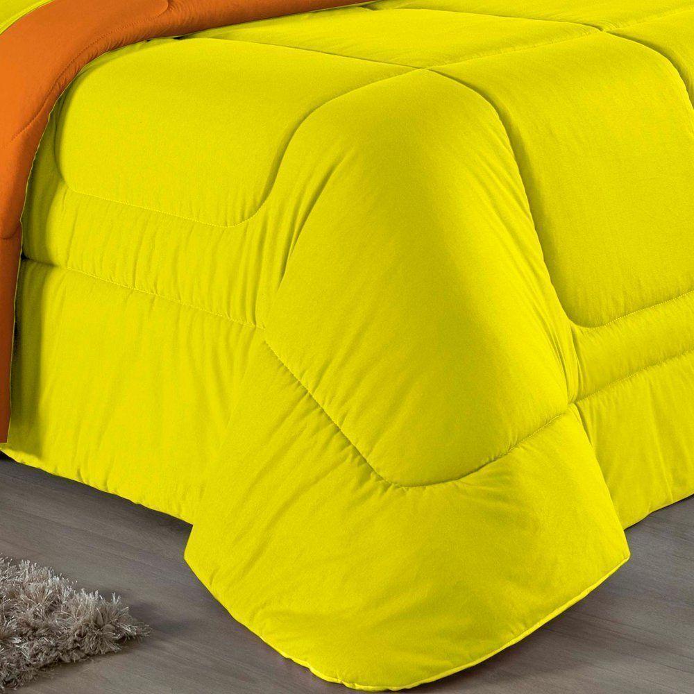 Edredom Queen Nobre 1 Peça Dupla Face 2,20m X 2,40m Malha 100% Algodão - Amarelo / Laranja