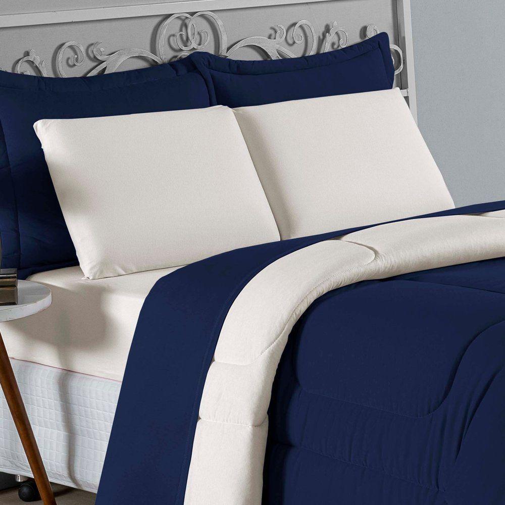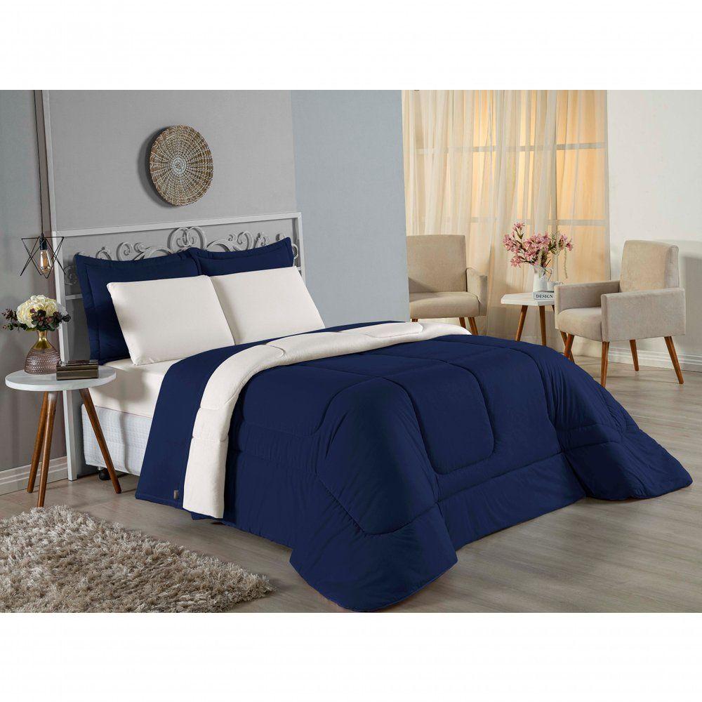 Edredom Queen Nobre 1 Peça Dupla Face 2,20m X 2,40m Malha 100% Algodão - Azul-marinho / PalhaGaranta o aconchego que sua cama Queen merece com o Edredom Queen Nobre. Uma peça essencial para quem busca a combinação ideal entre o conforto térmico e a suavidade incomparável do algodão em fio penteado.Por que o Edredom Queen Nobre é uma ótima escolha?- Toque de Malha Premium: Confeccionado em 100% Algodão com Fio 30/1 Penteado, oferece uma sensação de abraço, sendo extremamente macio ao toque.- Design Dupla Face: Com acabamento liso em ambos os lados, permite diversas composições na decoração do quarto, unindo praticidade e estilo.- Qualidade Superior: O processo de fio penteado garante um tecido mais uniforme, resistente e livre de bolinhas, mantendo a beleza da peça por muito mais tempo.- Conforto Térmico Ideal: O enchimento em fibra de poliéster siliconada proporciona o volume certo para aquecer sem pesar, garantindo noites de sono perfeitas.Produto composto por (Total 01 Peça):01 Edredom Queen Dupla Face 2,20m x 2,40mComposição:Tecido: Malha 100% Algodão - Fio 30/1 PenteadoEnchimento: 100% Poliéster Siliconada