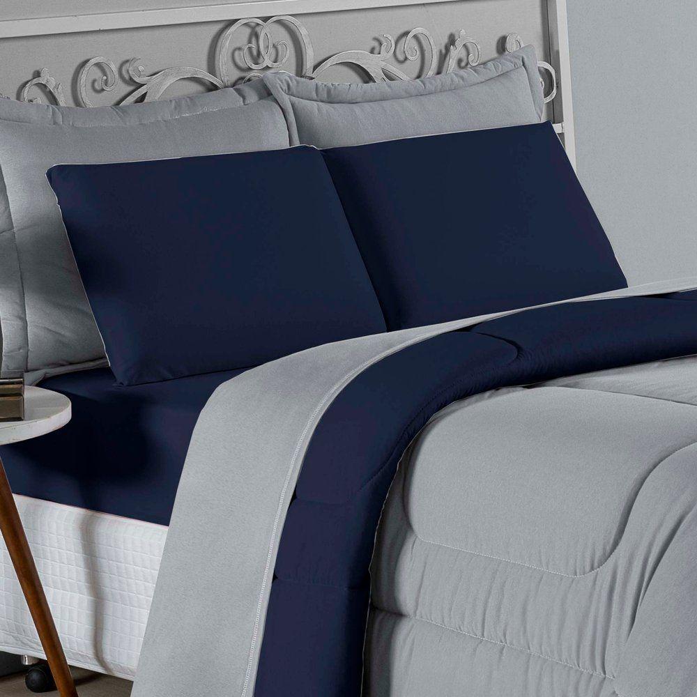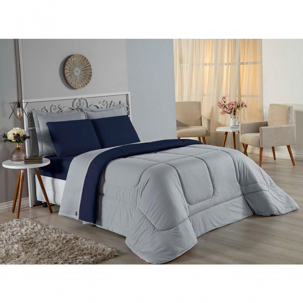 Edredom Queen Nobre 1 Peça Dupla Face 2,20m X 2,40m Malha 100% Algodão - Cinza / Azul-marinhoGaranta o aconchego que sua cama Queen merece com o Edredom Queen Nobre. Uma peça essencial para quem busca a combinação ideal entre o conforto térmico e a suavidade incomparável do algodão em fio penteado.Por que o Edredom Queen Nobre é uma ótima escolha?- Toque de Malha Premium: Confeccionado em 100% Algodão com Fio 30/1 Penteado, oferece uma sensação de abraço, sendo extremamente macio ao toque.- Design Dupla Face: Com acabamento liso em ambos os lados, permite diversas composições na decoração do quarto, unindo praticidade e estilo.- Qualidade Superior: O processo de fio penteado garante um tecido mais uniforme, resistente e livre de bolinhas, mantendo a beleza da peça por muito mais tempo.- Conforto Térmico Ideal: O enchimento em fibra de poliéster siliconada proporciona o volume certo para aquecer sem pesar, garantindo noites de sono perfeitas.Produto composto por (Total 01 Peça):01 Edredom Queen Dupla Face 2,20m x 2,40mComposição:Tecido: Malha 100% Algodão - Fio 30/1 PenteadoEnchimento: 100% Poliéster Siliconada