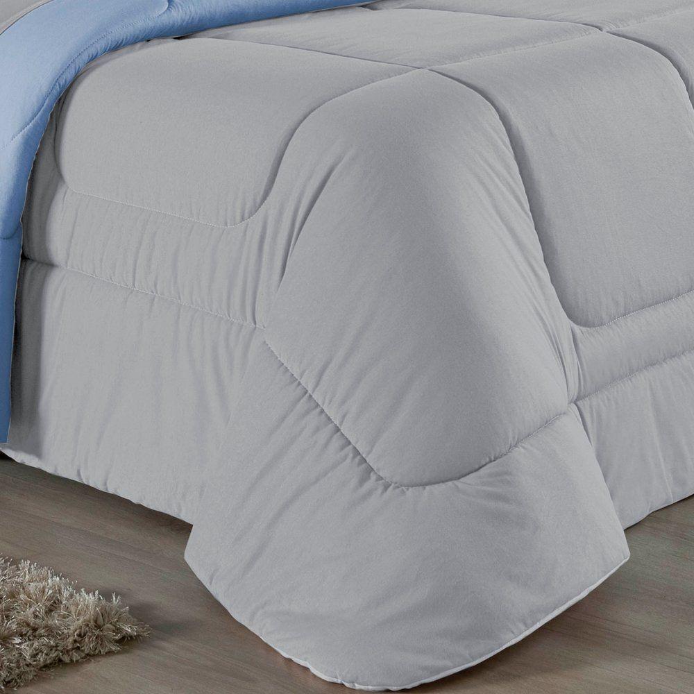 Edredom Queen Nobre 1 Peça Dupla Face 2,20m X 2,40m Malha 100% Algodão - Cinza / Azul-bebêGaranta o aconchego que sua cama Queen merece com o Edredom Queen Nobre. Uma peça essencial para quem busca a combinação ideal entre o conforto térmico e a suavidade incomparável do algodão em fio penteado.Por que o Edredom Queen Nobre é uma ótima escolha?- Toque de Malha Premium: Confeccionado em 100% Algodão com Fio 30/1 Penteado, oferece uma sensação de abraço, sendo extremamente macio ao toque.- Design Dupla Face: Com acabamento liso em ambos os lados, permite diversas composições na decoração do quarto, unindo praticidade e estilo.- Qualidade Superior: O processo de fio penteado garante um tecido mais uniforme, resistente e livre de bolinhas, mantendo a beleza da peça por muito mais tempo.- Conforto Térmico Ideal: O enchimento em fibra de poliéster siliconada proporciona o volume certo para aquecer sem pesar, garantindo noites de sono perfeitas.Produto composto por (Total 01 Peça):01 Edredom Queen Dupla Face 2,20m x 2,40mComposição:Tecido: Malha 100% Algodão - Fio 30/1 PenteadoEnchimento: 100% Poliéster Siliconada